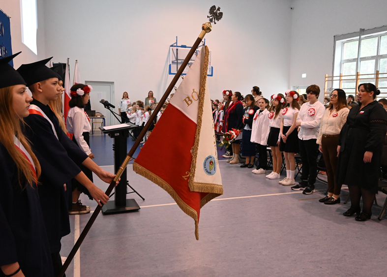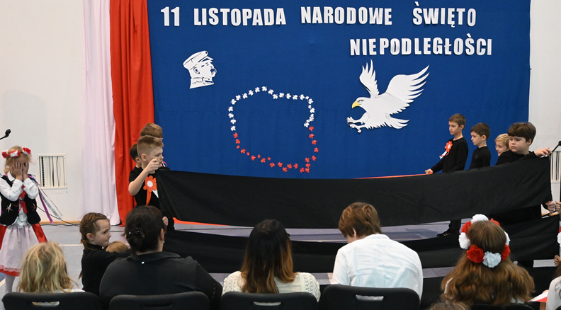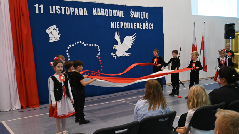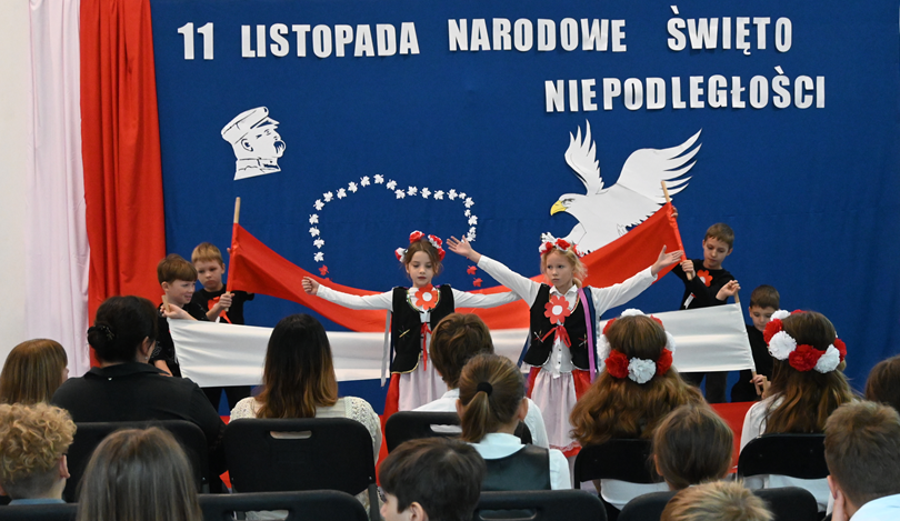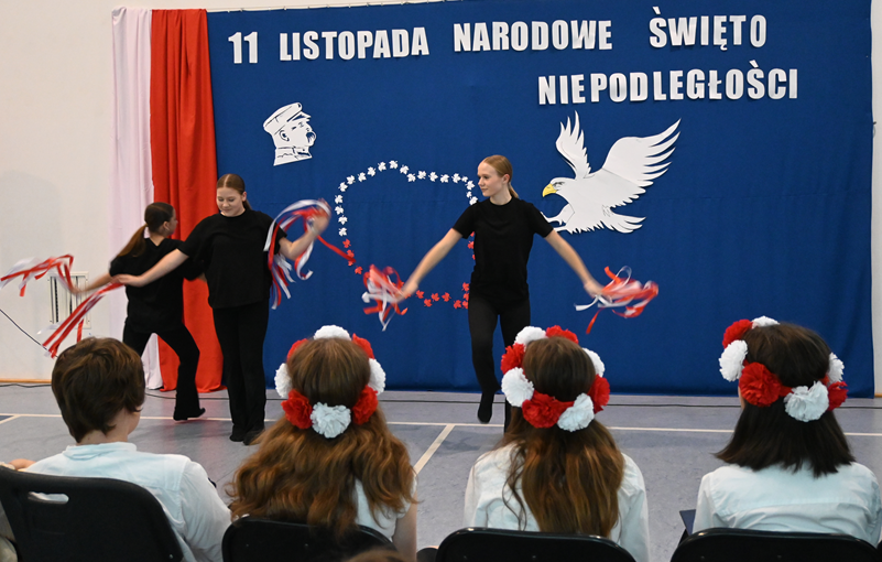 Uczennice klasy 8 oraz uczniowie klasy 2a odtańczyli dwa tańce patriotyczne. Nie zabrakło rysu historycznego przybliżającego etymologię święta, a nasz zespół fletowy tradycyjnie pięknie zagrał, tym razem utwór “O mój rozmarynie”.