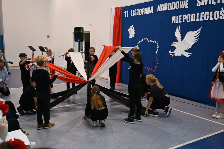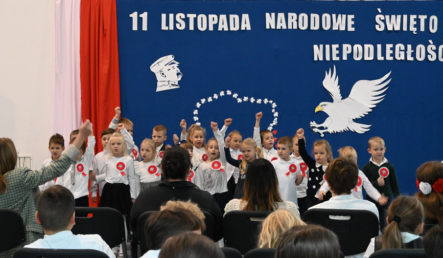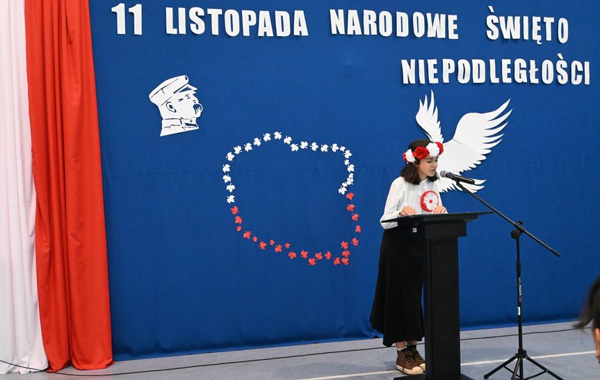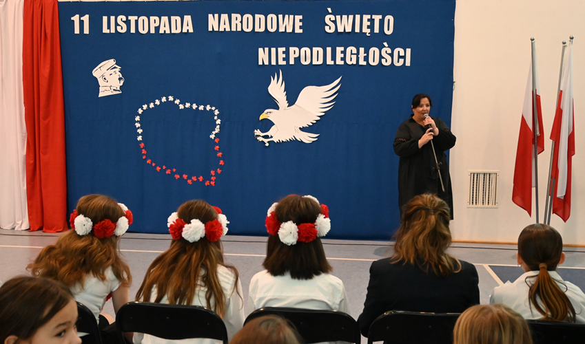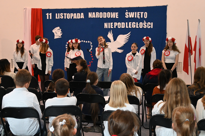 Podczas akademii odśpiewaliśmy hymn Polski i wiele patriotycznych piosenek tj. “Rota”, “Wojenko, wojenko”, “My pierwsza brygada”, “Piechta, ta szara piechota”, “Co to jest Niepodległość?” oraz “Żeby Polska była Polską”.