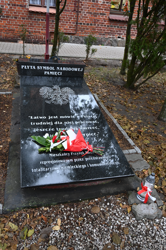 Złożyliśmy kwiaty i zapaliliśmy znicz na Płycie Symbolu Pamięci Narodowej. Podczas uroczystości panowała podniosła atmosfera.