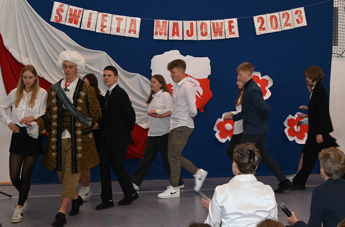 27 kwietnia odbyła się w naszej szkole uroczystość poświęcona świętom majowym. Uczniowie klas 8, 6 i 5 przedstawili rys historyczny uchwalenia Konstytucji 3 Maja.