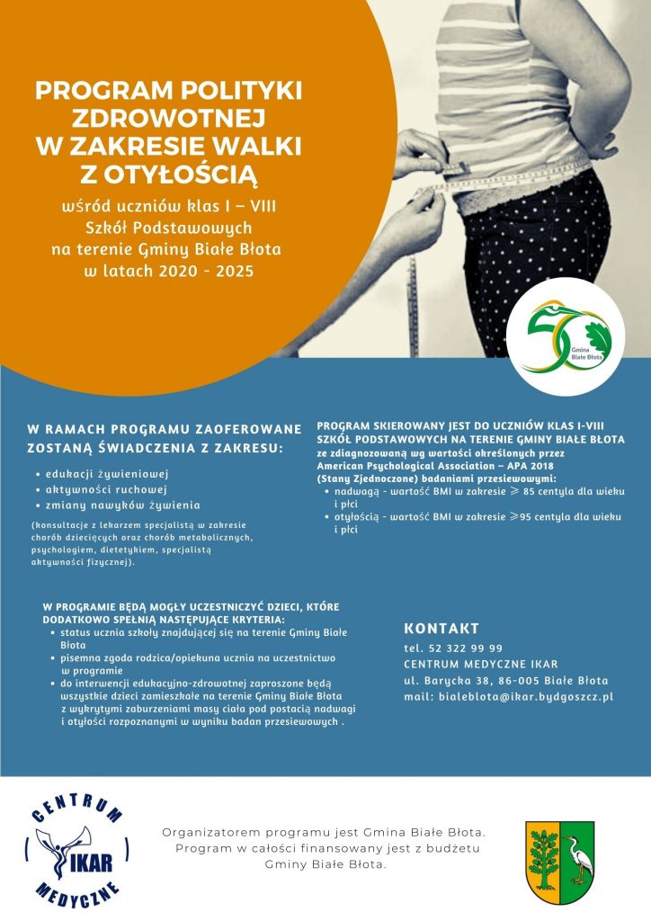 Program Polityki Zdrowotnej w zakresie walki z otyłością wśród uczniów klas I-VIII Szkół Podstawowych na terenie Gminy Białe Błota realizowany w roku szkolnym 2023/2024