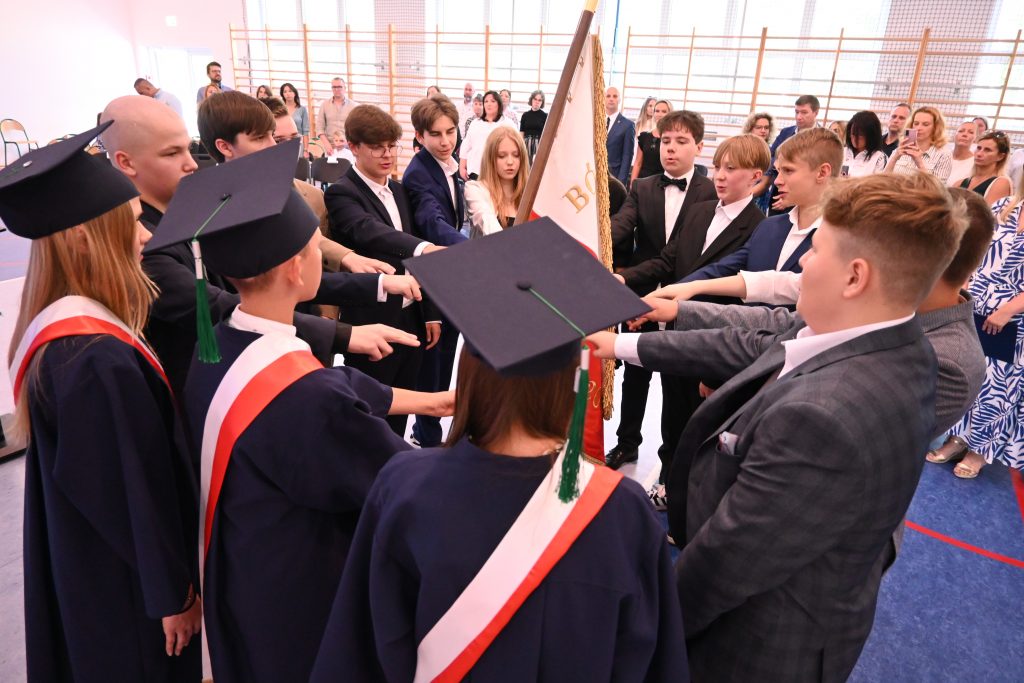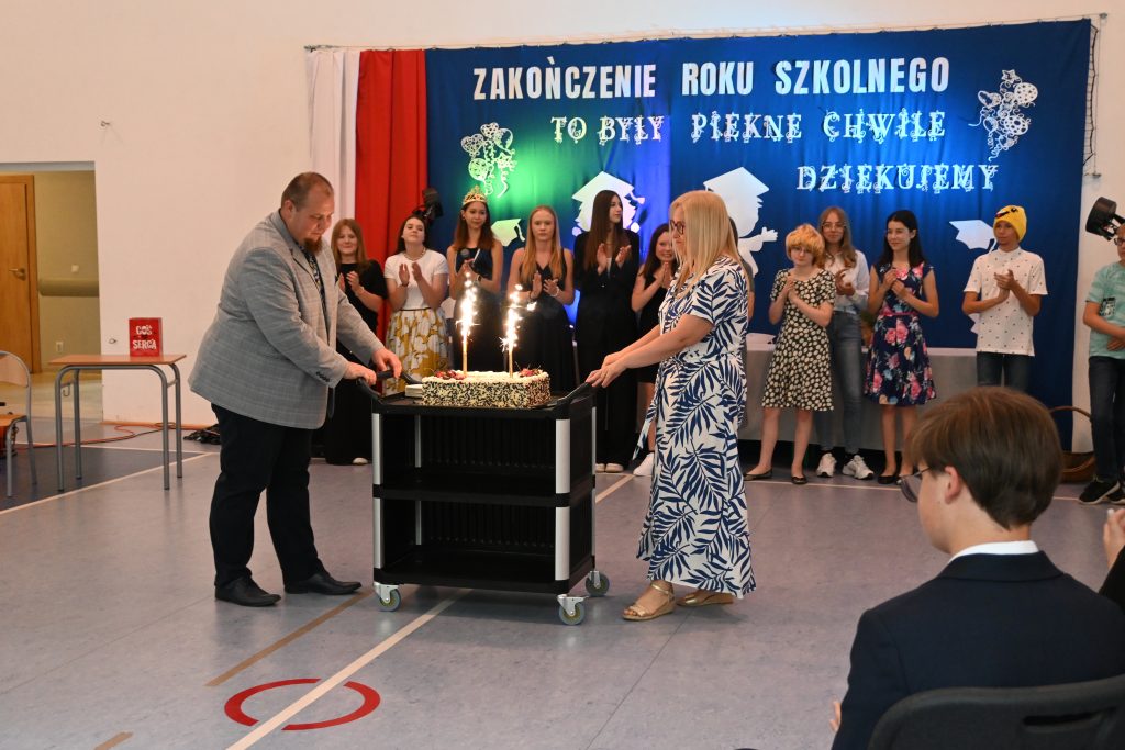 Przez 8 lat wszyscy się bardzo zżyliśmy. Zintegrowały nas zarówno wspólne radości, sukcesy jak i porażki oraz trudności. Na zadumę i wspomnienia był czas przy ognisku. O akcent humorystyczny zadbała klasa 7, która z panem Sławomirem Krajewskim przygotowała „Kopciuszka na wesoło” dla swoich starszych kolegów. Oprawę muzyczną zawdzięczamy Kołu Muzycznemu pod kierownictwem pana Łukasza Malinowskiego.