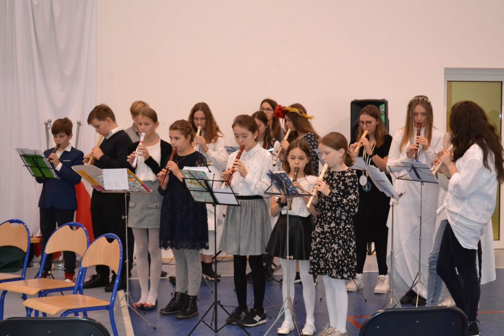 Akademię uświetniły tradycyjnie występy: Zespołu Fletowego oraz ucznia klasy 5 Wiktora Żabczyńskiego.