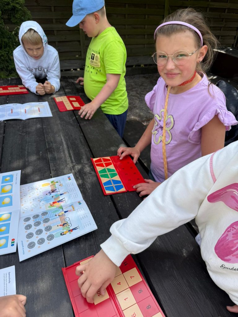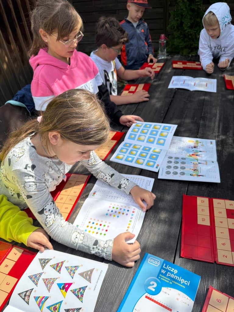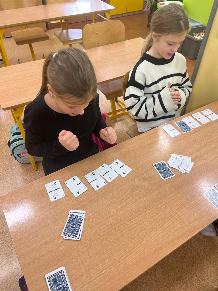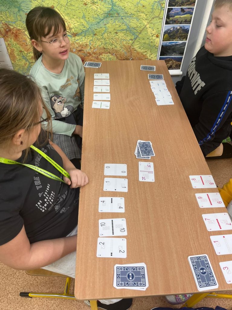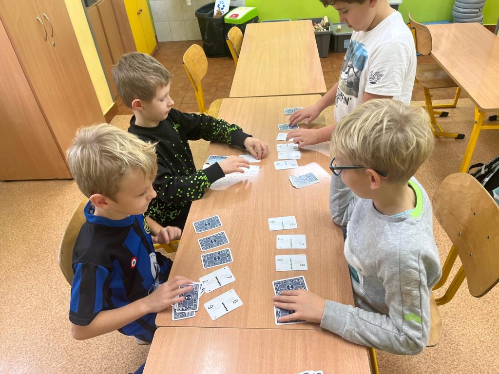 i utrwalają wiedzę z zakresu edukacji matematycznej. Realizacja złożeń programu zajęć pozwala wdrożyć uczniów do samodzielnego, logicznego myślenia, rozwijać ich zdolności i zainteresowania, a także przygotować do dalszej edukacji matematycznej oraz osiągania sukcesów w konkursach matematycznych. W trakcie cotygodniowych spotkań dzieci łączą naukę z zabawą, analizując i rozwiązując zadania matematyczne o podwyższonym stopniu trudności, grając w gry matematyczne takie jak na przykład Karty Grabowskiego i układając klocki PUS (Pomyśl- Ułóż- Sprawdź).