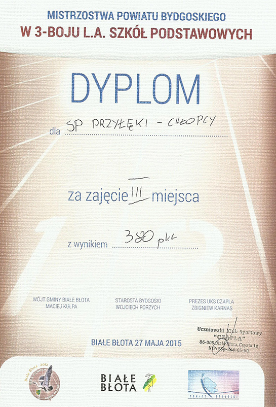 Pragniemy z wielką radością poinformować, iż zarówno dziewczęta jak i chłopcy naszej szkoły, zajęli 3 miejsca w Mistrzostwach Powiatu Bydgoskiego w 3-boju L.A. Szkół Podstawowych.
