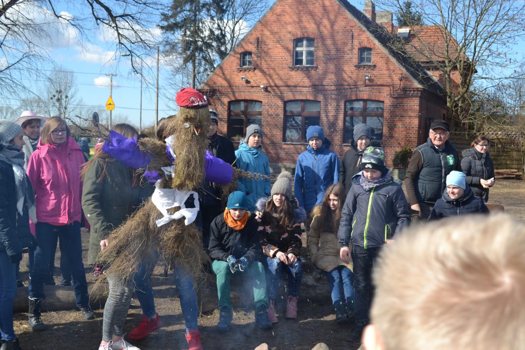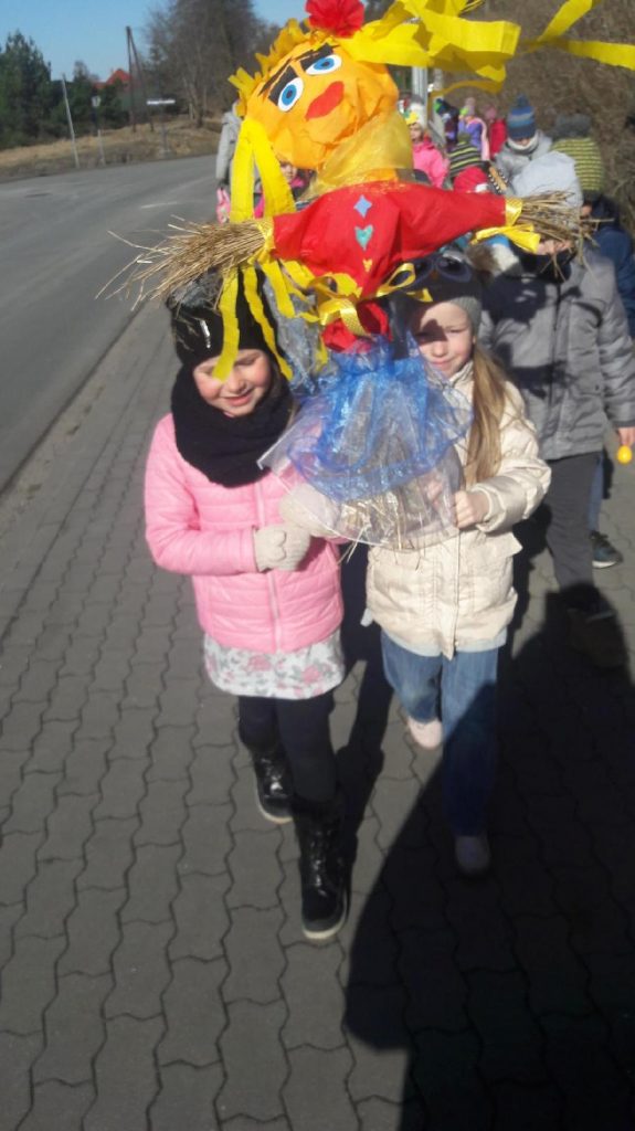 Uczniowie zgodnie z tradycją pożegnali Marzannę – Zimową Pannę i wspólnie śpiewem przywołali wiosnę. Mamy nadzieję, że już wkrótce zagości u nas wiosna i na dobre zazieleni łąki, drzewa i trawy…