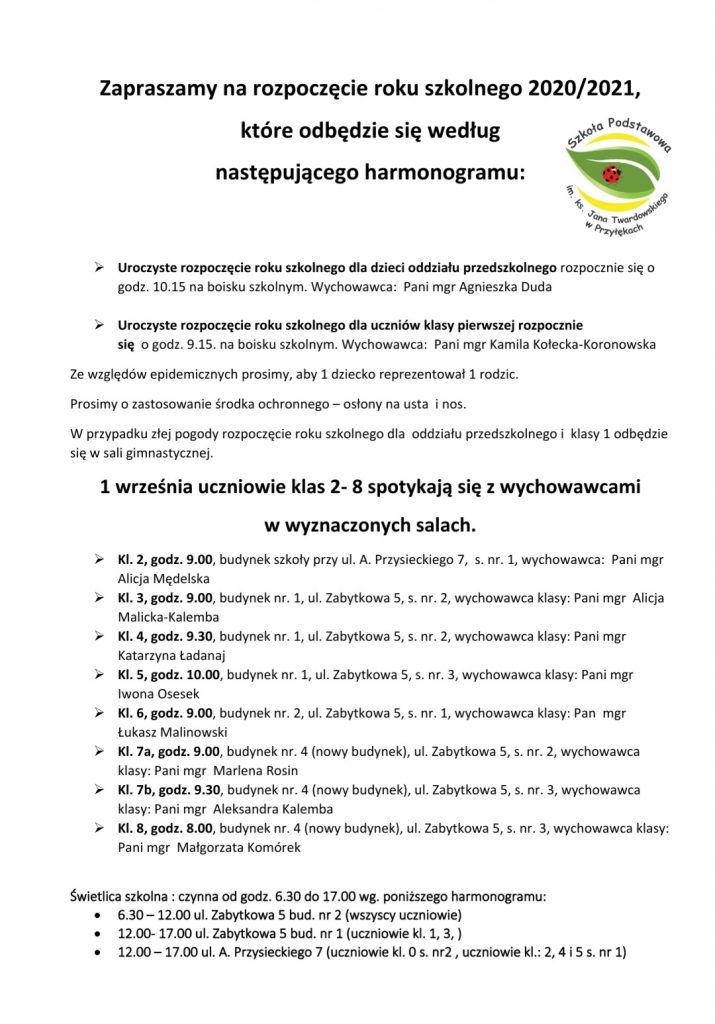 ROZPOCZĘCIE ROKU SZKOLNEGO 2020/2021