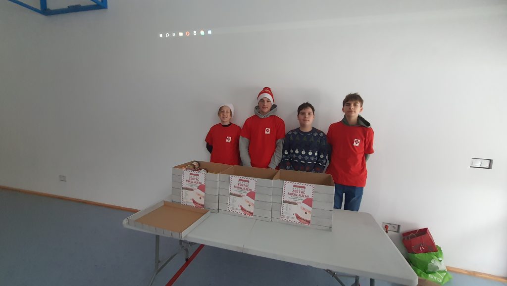 Wolontariusze Szkolnego Koła Caritas w ramach akcji „I Ty możesz zostać Mikołajem” ochoczo zbierali dary do szkolnej paczki dla najuboższych.