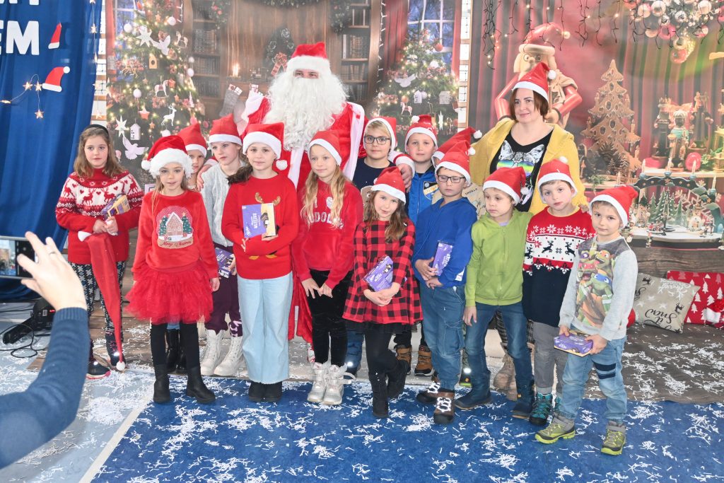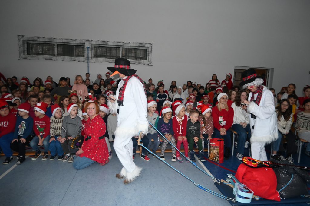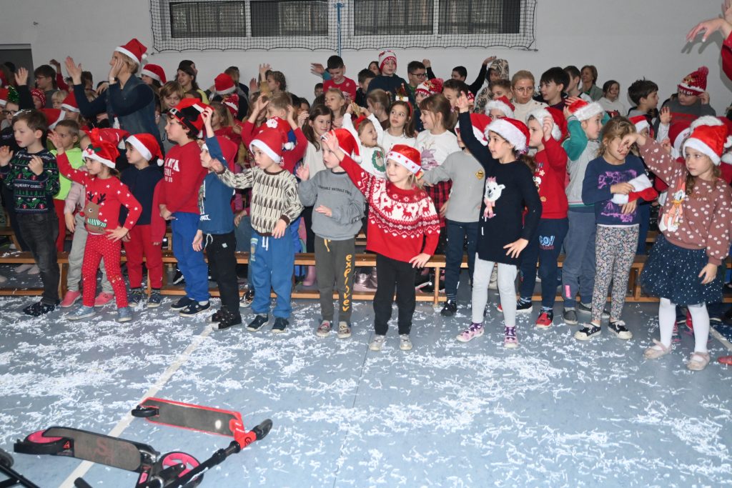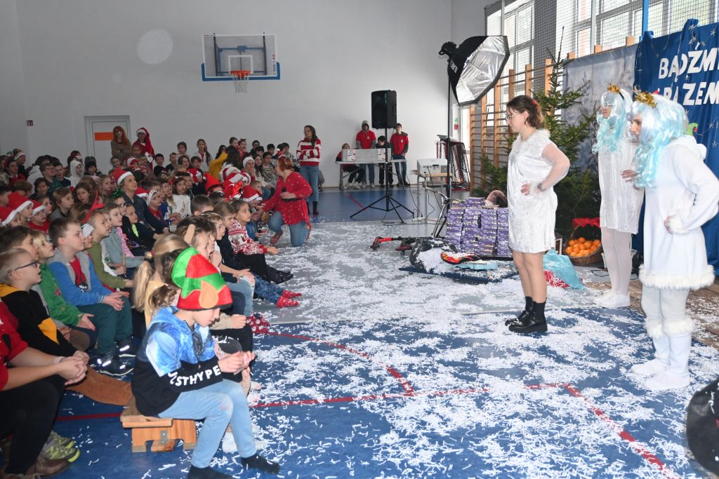 W tym roku Mikołaj przybył do naszej szkoły zatroskany. Okazało się, że nie dostał od dzieci żadnych listów. Dlaczego? Uświadomiły nam to elfy – mikołajowi pomocnicy, bałwanki, które ośnieżyły całą salę, śnieżynki oraz renifer Mikuś. Wszyscy byli tak, jak dzieci zajęci surfowaniem po internecie, liczeniem like’ów na portalach społecznościowych oraz graniem na konsoli…. Sytuację uratowała jednak pani listonoszka, która przyniosła papierowe listy przywracając wiarę w magię świąt. Wszyscy dzisiaj już wiemy, co tak naprawdę liczy się w życiu – realny kontakt z drugim człowiekiem i radość z bycia razem.
