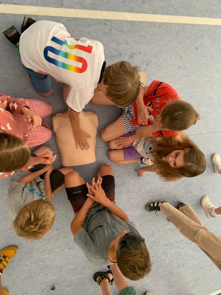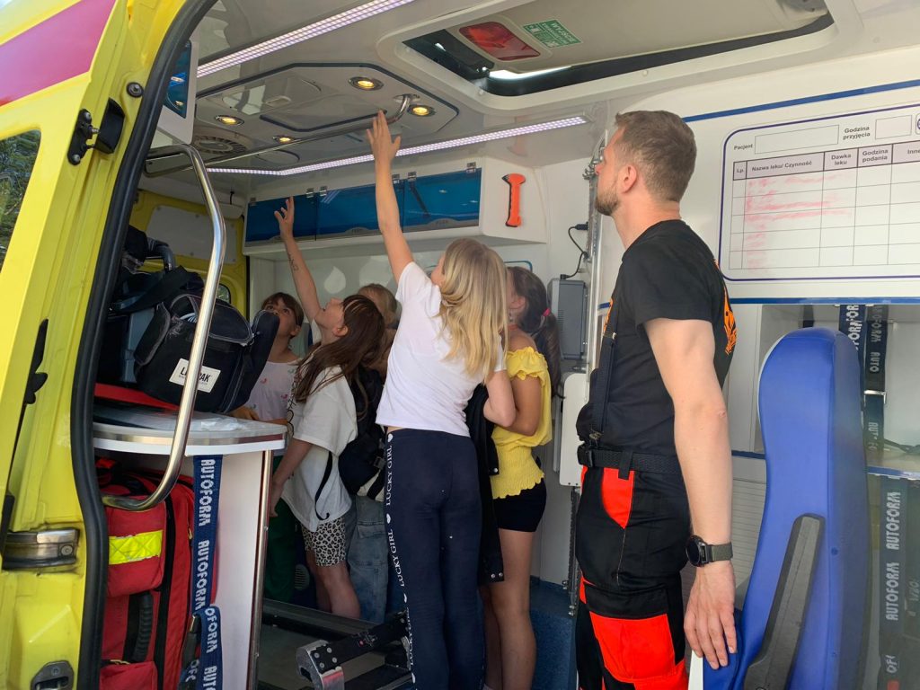 17 czerwca br., odwiedzili nas ratownicy medyczni, którzy razem z pedagogiem poprowadzili warsztaty dla uczniów dotyczące bezpieczeństwa podczas wakacji. Uczniowie dowiedzieli się, na co zwrócić szczególną uwagę podczas wakacji oraz w jaki sposób reagować w trudnych sytuacjach. Zaproszeni goście opowiedzieli i zaprezentowali, jak należy prawidłowo udzielać pomocy poszkodowanym. Uczniowie mieli możliwość przećwiczenia udzielania pierwszej pomocy pod okiem ratowników. Klasy I-III dodatkowo mogły zobaczyć, jak wygląda ambulans od środka i dowiedzieć się do czego służy jego wyposażenie. Ratownicy wytrwale i z zaangażowaniem odpowiadali na nurtujące uczniów pytania.