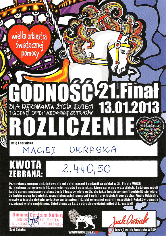 W niedzielę 13.01.2013 r. po raz kolejny Szkoła Podstawowa im. ks. Jana Twardowskiego w Przyłękach przyłączyła się do Wielkiej Orkiestry Świątecznej Pomocy.