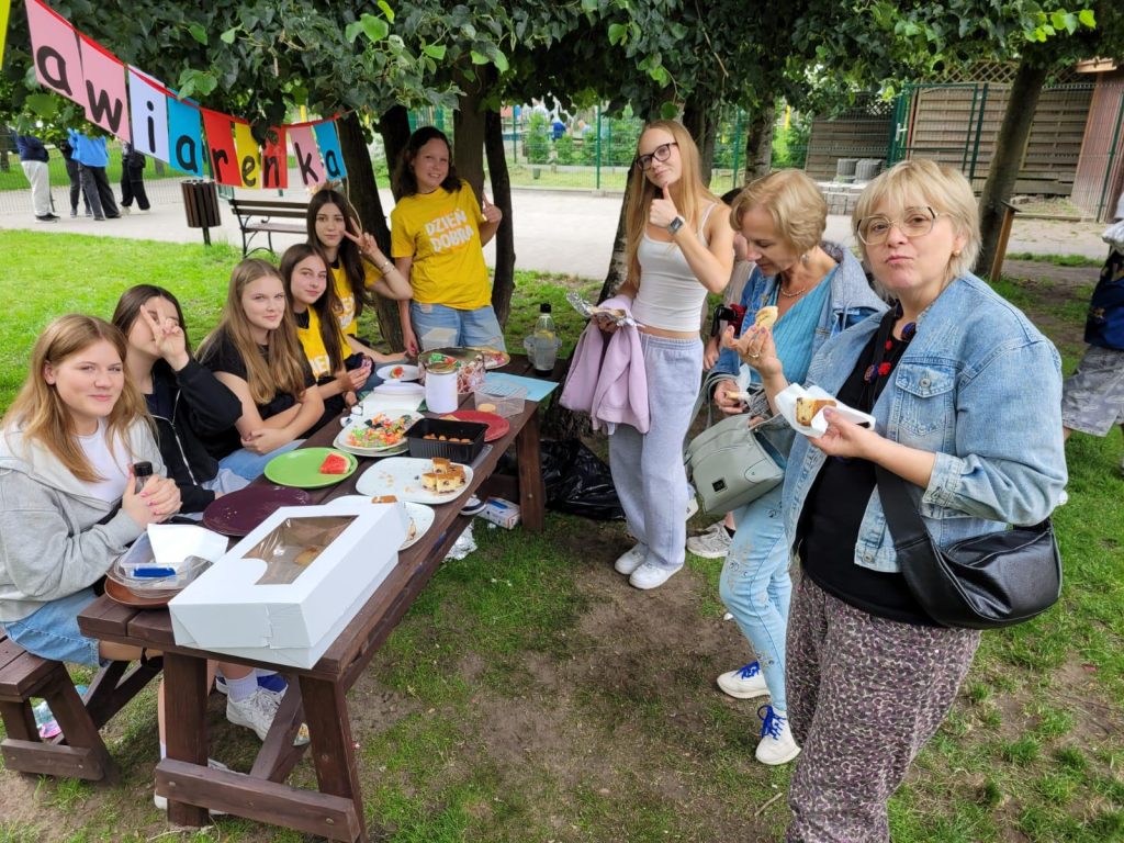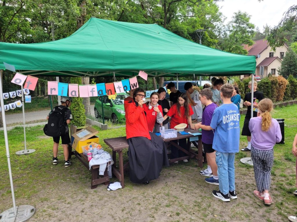 To był naprawdę wyjątkowy dzień – pełen radości, zabawy i dobrych serc! Podczas naszego szkolnego Dnia Dobra nie zabrakło atrakcji: emocjonująca loteria fantowa, koło fortuny z zagadkami o bezpiecznych wakacjach, pyszna kawiarenka oraz niezapomniana dyskoteka pod chmurką, którą poprowadził nasz niezawodny kolega DJ Samplero!