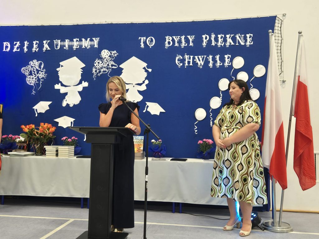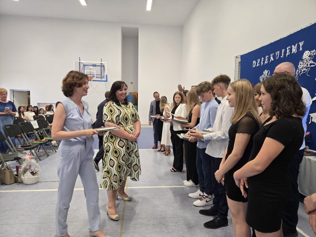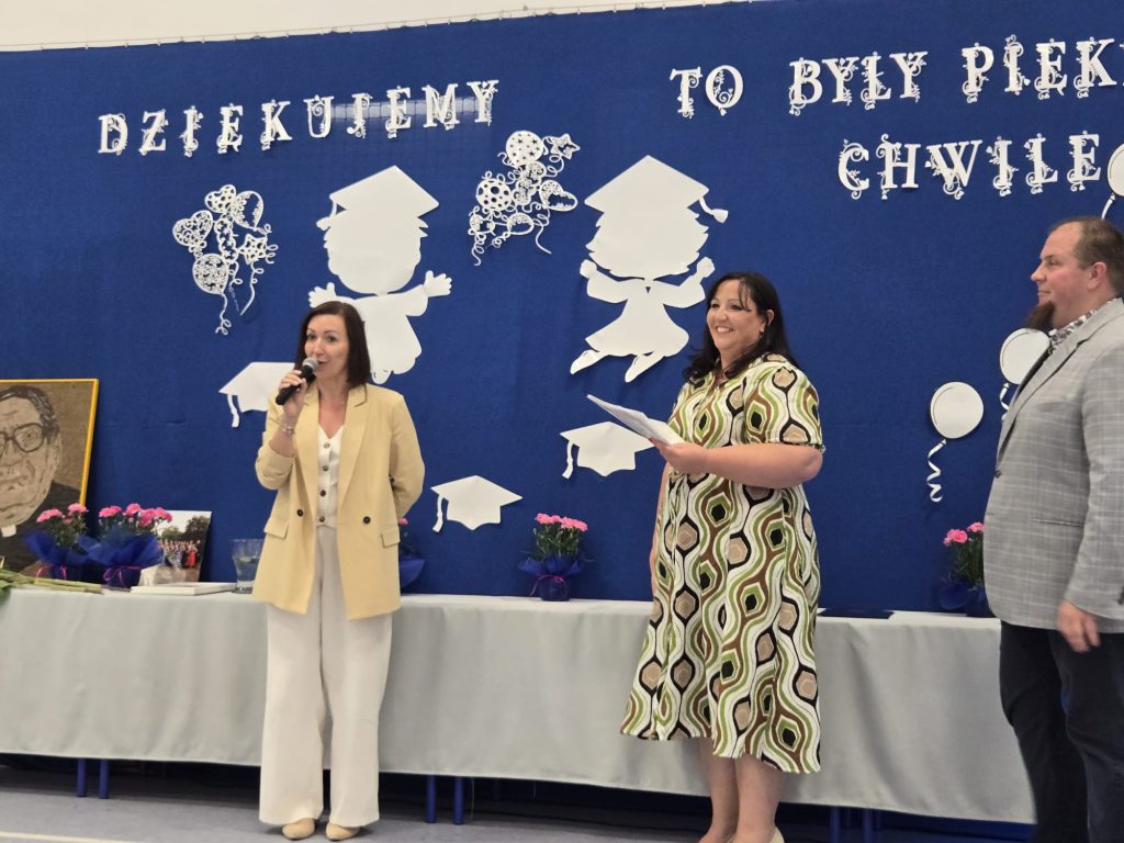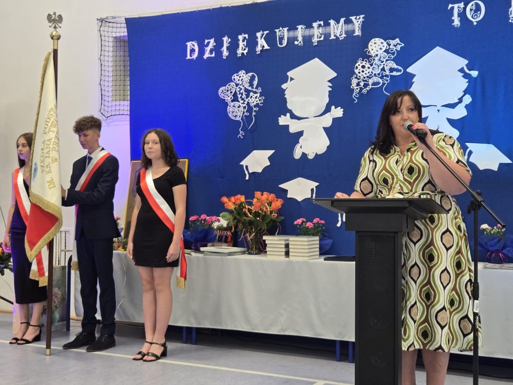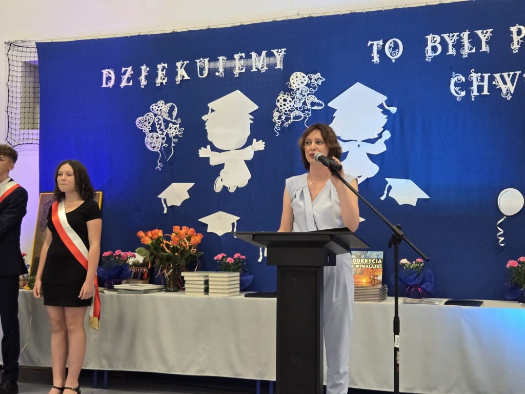 Szczególne podziękowania popłynęły w kierunku nauczycieli, wychowawców i pracowników szkoły – za trud, opiekę i towarzyszenie uczniom w ich ośmioletniej podróży. Nie zabrakło też osobistego pożegnania z panem Tomaszem, nauczycielem geografii, który również żegna się ze szkołą. Ósmoklasiści podziękowali mu z humorem i wzruszeniem, wręczając kwiaty i śpiewając piosenkę specjalnie dla niego.