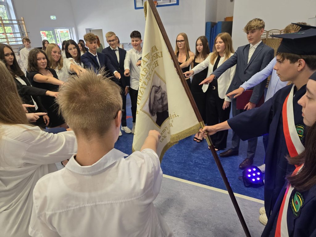 Ósmoklasiści złożyli ślubowanie, w którym zadeklarowali, że godnie będą reprezentować naszą szkołę w dalszym życiu – z szacunkiem dla zdobytej wiedzy, tradycji i wartości, jakie im przekazano.