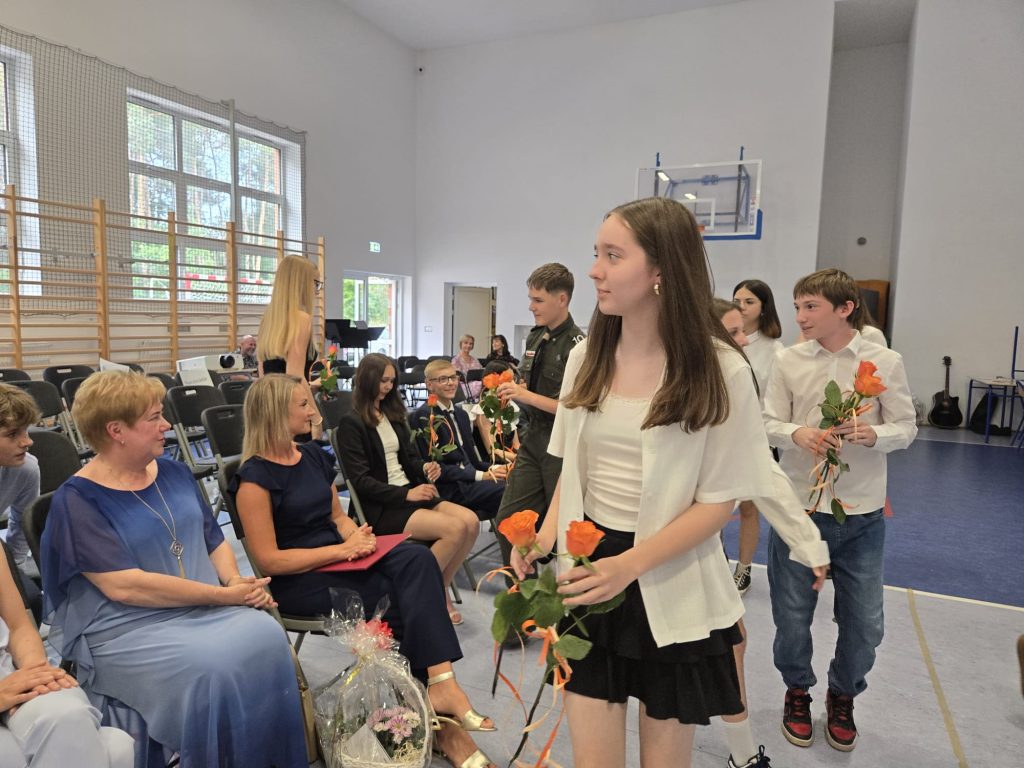 Dzień zakończyła piosenka „Cudownych rodziców mam” i wręczenie róż – jako wyraz wdzięczności wobec tych, którzy wspierali ósmoklasistów przez wszystkie lata edukacji.