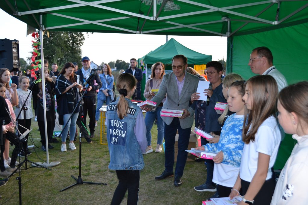 „Dmuchawce, latawce, wiatr. Daleko z betonu świat”- śpiewała Urszula w swoim kultowym przeboju, natomiast w minioną sobotę 2 października, uczennice naszej szkoły tymże właśnie utworem otworzyły XXVIII obchody Gminnego Święta Latawca. Organizatorem wydarzenia była Szkoła Podstawowa im. ks. Jana Twardowskiego w Przyłękach przy współudziale Sołectwa Przyłęki oraz Stowarzyszenia na Rzecz Rozwoju Przyłęk, a honorowym patronatem objął je Wójt Gminy Białe Błota- Dariusz Fundator. Podobnie jak w latach poprzednich, tak i w tym roku impreza miała na celu propagowanie czynnego wypoczynku na świeżym powietrzu, zachęcenie dzieci i ich rodziców do wspólnego majsterkowania, a także integrację społeczności uczniowskiej z terenu gminy. Pogoda, jak na październik, wyjątkowo dopisała. Błękitne niebo i piękne słońce sprzyjały biesiadowaniu i wspólnej zabawie, a wiatr wspierał uczestników konkursu lotów. Zawodnicy rywalizowali w czterech grupach wiekowych: klasy 0-1, 2-3, 4-6 i 7-8, natomiast przedmiotem oceny jury była wysokość lotu, czas utrzymywania się latawca w powietrzu oraz jego wygląd i estetyka wykonania. Chociaż to latawce odgrywały tego dnia główną rolę, nie zabrakło również innych atrakcji, takich jak: malowanie na folii, robienie gniotków, rzeźbienie w glinie czy modelowanie balonów. Młodsze dzieci mogły także poszaleć na dmuchanym placu zabaw. Zarówno w trakcie trwania konkursu, jak i po jego zakończeniu goście mogli liczyć na niemały poczęstunek w formie kiełbasek z grilla oraz bogatej oferty kawiarenki, do której przepyszne wypieki przygotowali rodzice oraz jeden ze sponsorów- cukiernia Finezja Smaku. Czas przy wspólnym stole umilał występ duetu muzycznego- Kamili i Mateusza, dwójki wyjątkowo zdolnych młodych osób. W ich wykonaniu usłyszeliśmy wiele popularnych i lubianych piosenek, jak również specjalnie skomponowany na tę okazję utwór pt. „Latawiec”. Podczas imprezy niemałą ucztę dla ducha zapewnili też uczniowie naszej szkoły, którzy zaprezentowali swe talenty wokalne, muzyczne oraz taneczne, a ze specjalnym pokazem karate wystąpiły dzieci z klubu BUSHI-DO. Był to dzień pełen emocji, radości i wzruszeń, dzień dla dzieci i dorosłych, dla fanów sportu i zdrowej rywalizacji oraz słodkiego, beztroskiego lenistwa- dzień, w którym mogliśmy po prostu być razem.