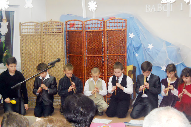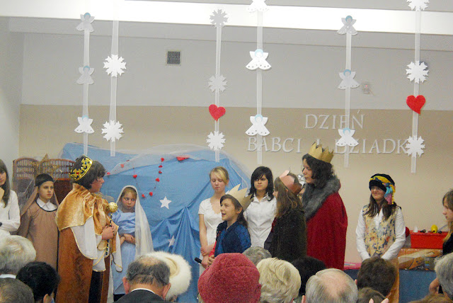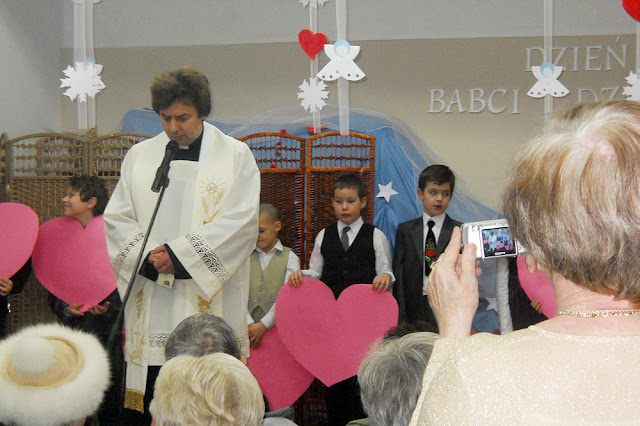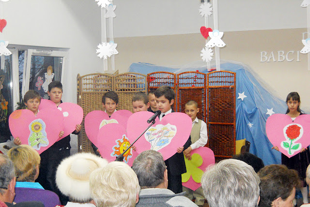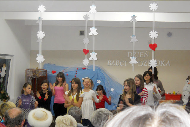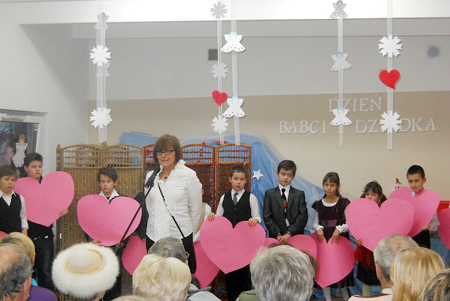 Wiele Babć i Dziadków usłyszało życzenia od swych wnuków z klasy pierwszej także w czwartek, kiedy to odbyła się specjalna uroczystość. Pierwszoklasiści przygotowali: pokaz taneczny, piosenki, wierszyki, słodki poczęstunek oraz własnoręcznie wykonane upominki w postaci torebek i korali z cukierków dla Babć oraz świeczniki dla Dziadków.