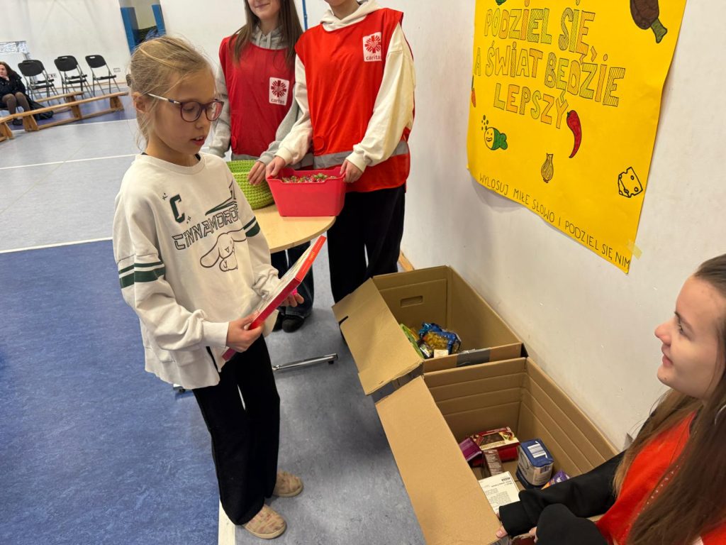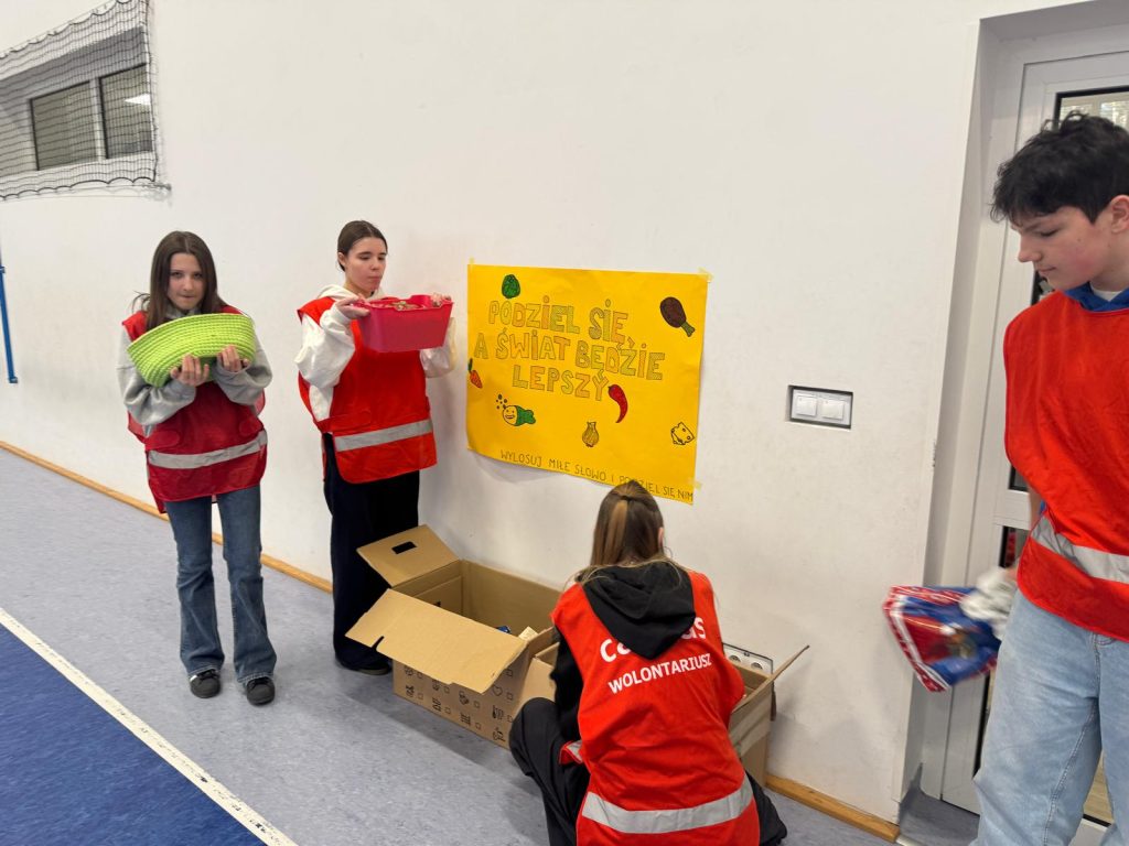 Jedną z inicjatyw była zbiórka żywności przeprowadzona na terenie naszej szkoły. Dzięki ogromnemu zaangażowaniu uczniów, rodziców oraz nauczycieli udało się zgromadzić wiele produktów, które następnie zostały przekazane osobom potrzebującym. To piękny przykład wrażliwości i solidarności naszej społeczności szkolnej.