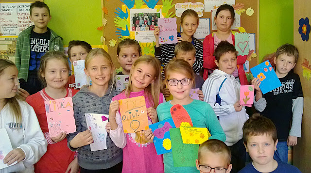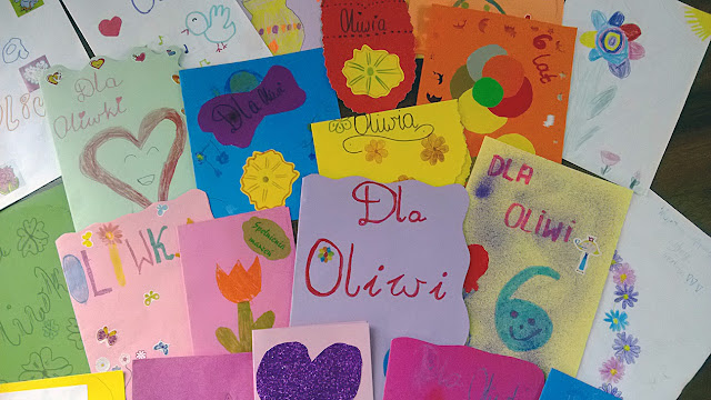 Najmłodsi uczniowie naszej szkoły, wysłali kartki na urodziny dla Oliwii, spełnili jej marzenie i wywołali uśmiech na jej twarzy.