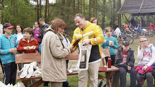 Na zakończenie Prezes Stwoarzyszenia Pan Paweł Zuehlke podziękował również Sponsorom i osobom, zaangażowanym w organizację wydarzenia przekazując pamiątkowe książki “Osobiste notatki Jana Pawła II”. Radny Powiatowy Pan Andrzej Kubiak i Dyrektor Szkoły Podstawowej imienia ks. Jana Twardowskiego w Przyłękach podziękowali za organizację tego wydarzenia. Mimo dużego utrudzenia z uśmiechami powróciliśmy do Przyłęk. Na zakończenie rajdu każdy otrzymał wylosowany wcześniej upominek.