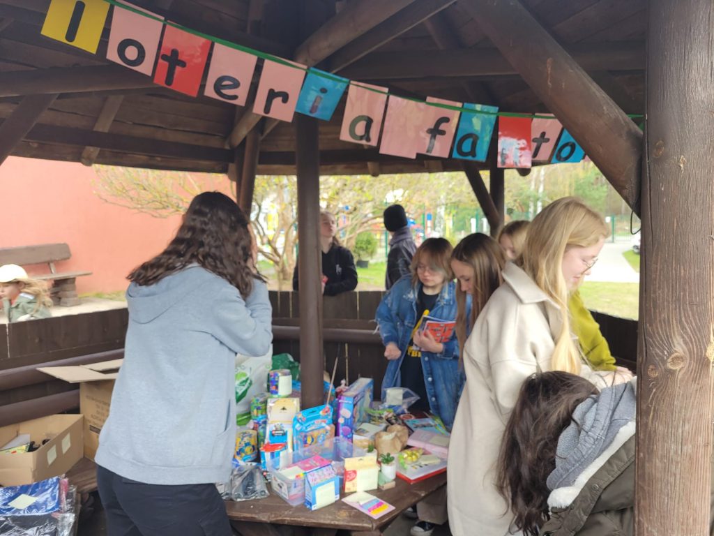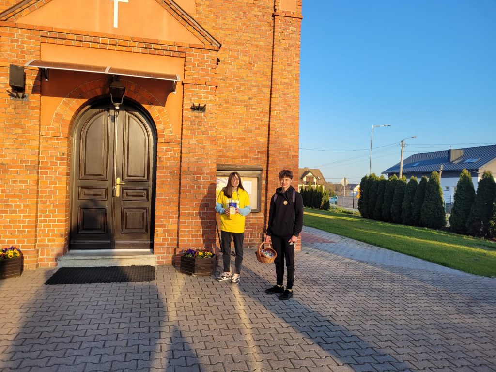 Młodzież należąca do Szkolnego Koła Caritas zorganizowała również 24 kwietnia kwestę do specjalnych puszek przed kościołem w Przyłękach, nagradzając ofiarodawców słodkim upominkiem.