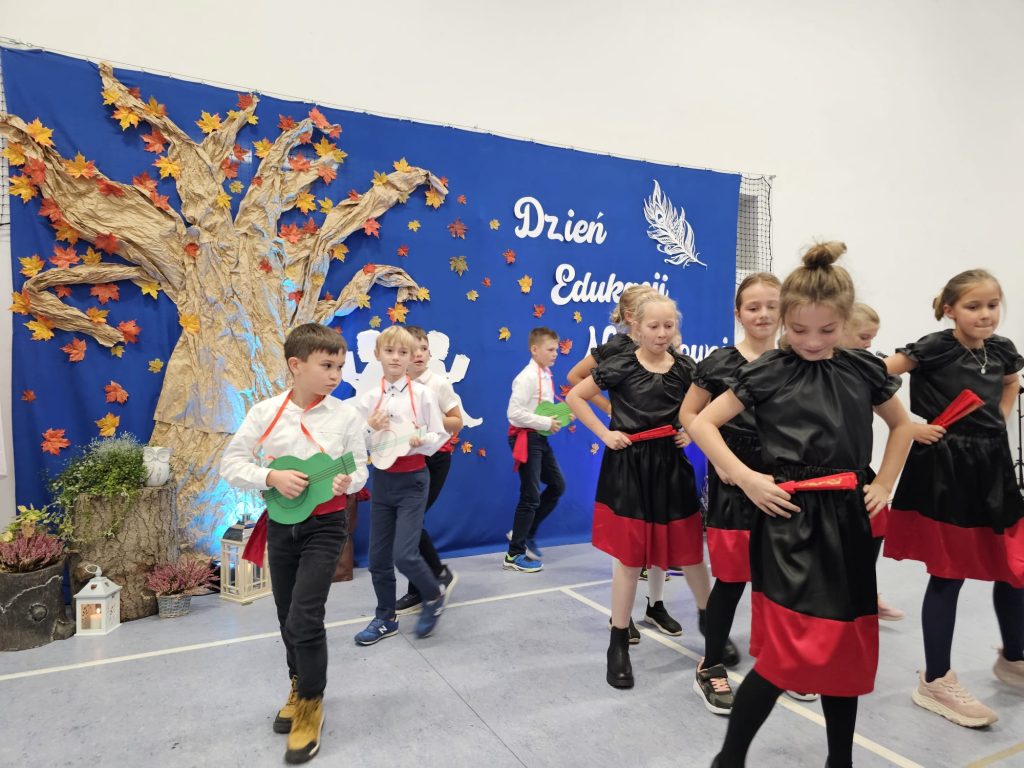 Nie zabrakło również wzruszających występów najmłodszych uczniów, którzy z wielkim zaangażowaniem tańczyli, śpiewali piosenki i składali życzenia swoim nauczycielom.