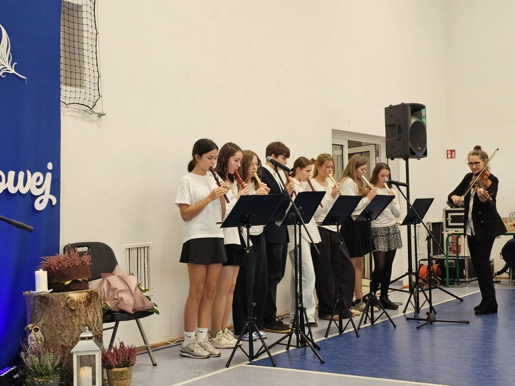 Artystyczną część uroczystości rozpoczęło koło fletowe prowadzone przez Małgosię Ziółkowską, która towarzyszyła młodym muzykom na skrzypcach. Ich występ wprowadził wszystkich w wyjątkowy, uroczysty nastrój. Następnie zaprezentowało się koło teatralne pod opieką Małgorzaty Komórek, które przygotowało humorystyczne scenki z życia szkoły, wywołując uśmiech na twarzach zgromadzonych.