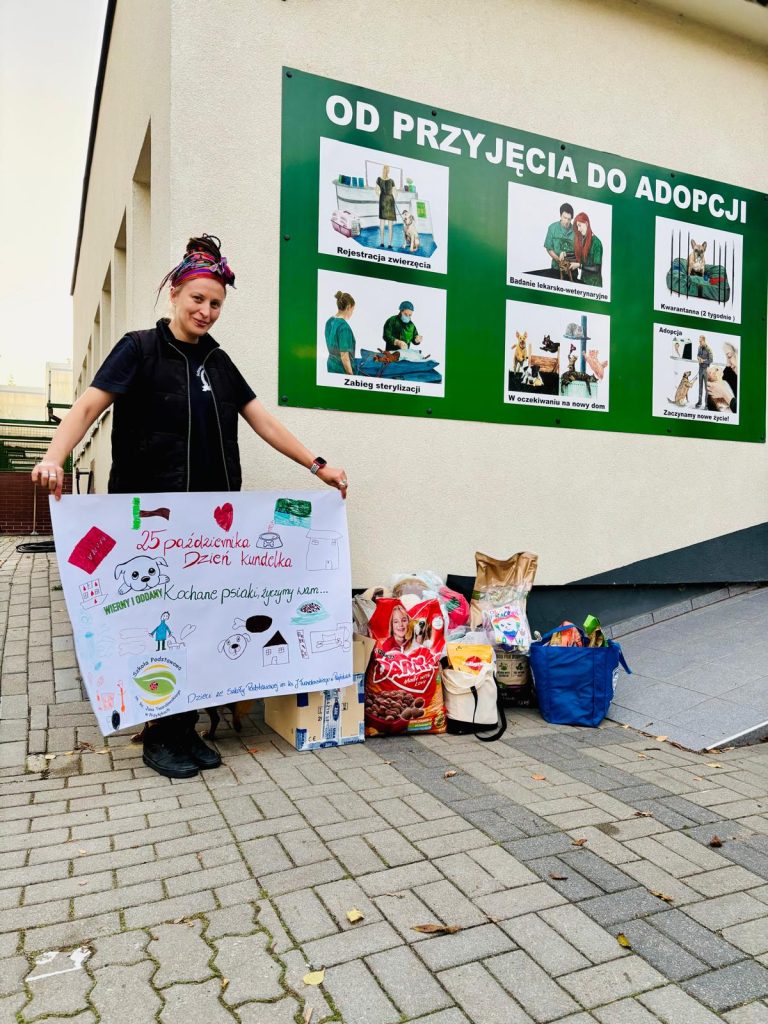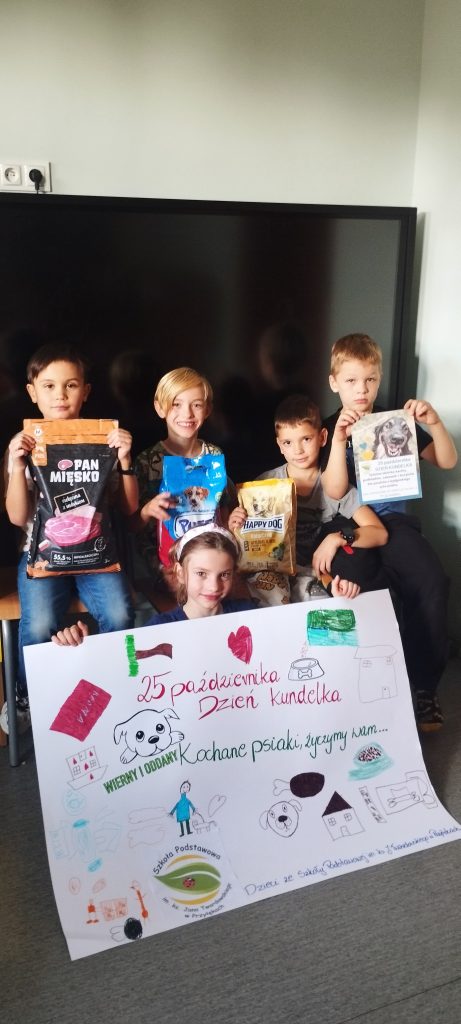 25 października – „Dzień Kundelka” – nasza szkoła po raz kolejny pamiętała o czworonożnych przyjaciołach. Zebrane dary trafiły do podopiecznych bydgoskiego schroniska dla zwierząt. Oprócz karmy, zabawek i kocyków psiaki otrzymały również życzenia w formie obrazkowej, stworzone przez dzieci ze świetlicy szkolnej.
