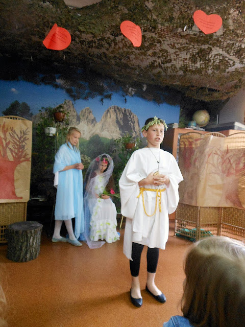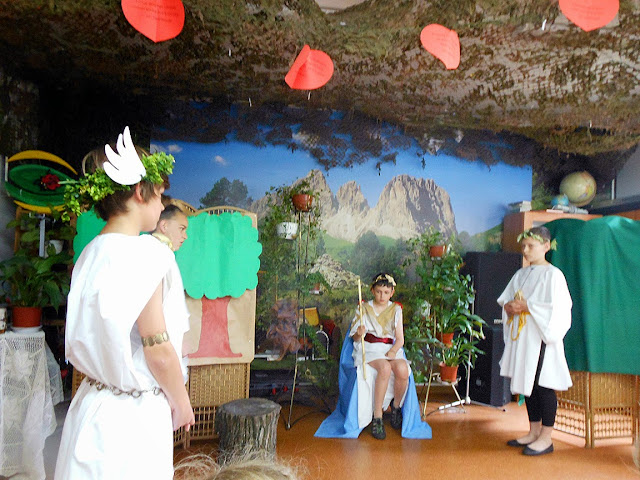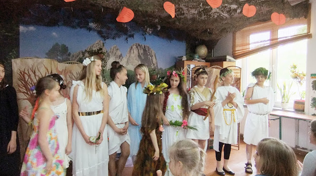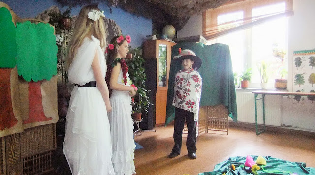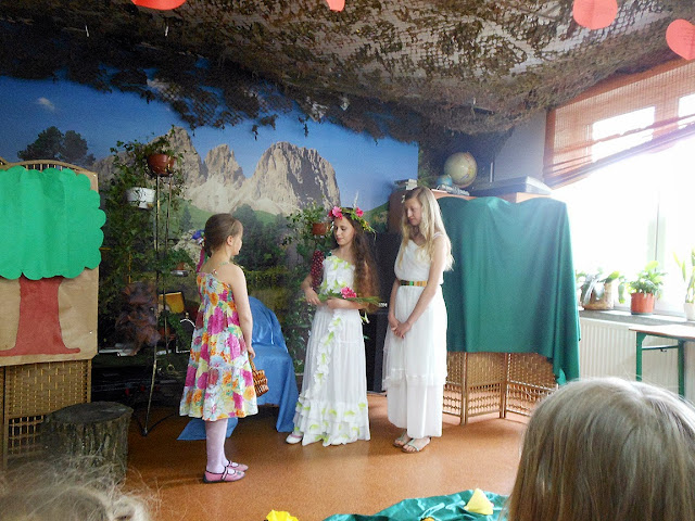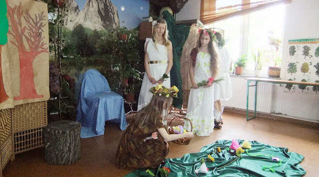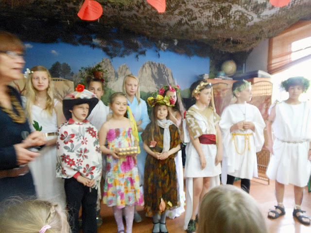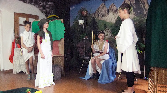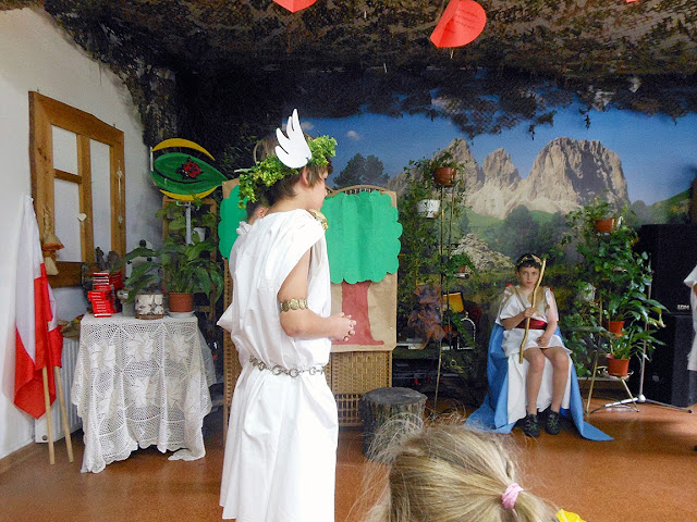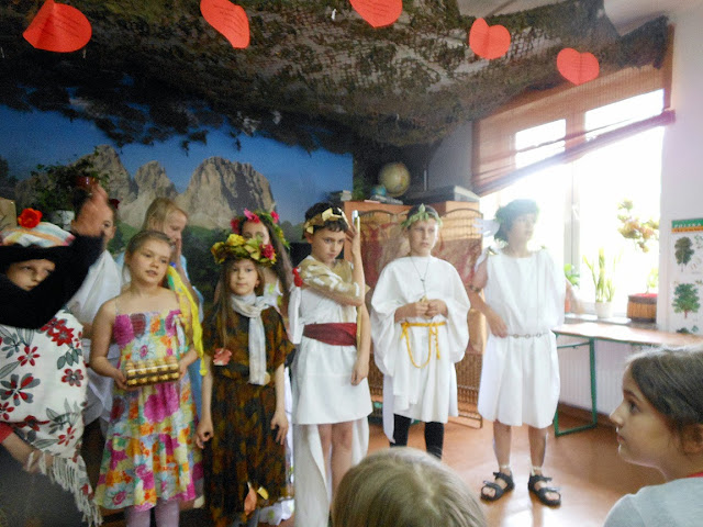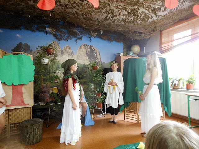Z okazji Dnia Matki uczniowie z kółka teatralnego Szkoły Podstawowej im. ks. Jana Twardowskiego w Przyłękach przygotowali przedstawienie pt. „Demeter i Kora”.