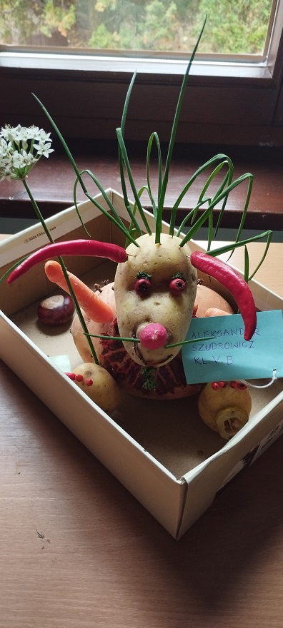 Mimo mało sprzyjającej pogody udało się zrealizować wszystko to, co zostało zaplanowane. Każda klasa miała do wykonania konkretne zadanie konkursowe: część budowała wieże z ziemniaków, inni rozwiązywali ziemniaczany quiz. Po zabawach drużynowych takich, jak skoki w workach na ziemniaki czy rzut ziemniakiem do celu można było ogrzać się przy ognisku i skosztować przepysznych pieczonych ziemniaków. Tego dnia w każdej klasie, spośród przyniesionych przez uczniów ziemniaczanych okazów, wybierany był ziemniak-gigant. Zabawy przy tym było, co nie miara. Na zakończenie nastąpiło wręczenie nagród w konkursie na “Cudaka z ziemniaka”. Jury miało twardy orzech do zgryzienia, ponieważ dzieci zaskoczyły ich swoją pomysłowością. Ostatecznie poszczególne miejsca zajęli: