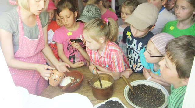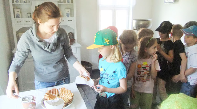 W jednej z chat robiliśmy masło i kawę zbożową, a w kolejnej piekliśmy wafle. Po zwiedzaniu na dzieci czekał poczęstunek – wiejski chleb z własnoręcznie zrobionym masłem oraz chyba największa atrakcja – przejażdżka bryczka po malowniczym terenie skansenu. Na koniec zmęczeni wylegiwaliśmy się na kocach, jedząc przepyszne lody. Zadowoleni, szczęśliwi wróciliśmy do szkoły, gdzie czekali na nas stęsknieni rodzice.