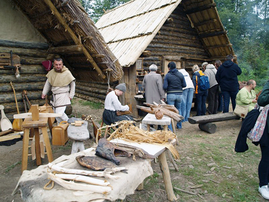 Prasłowiański gród witał wszystkich piękną pogodą i wieloma atrakcjami. Zwiedzanie rozpoczęliśmy od wioski wczesnosłowiańskiej. Uczniowie z zainteresowaniem wsłuchiwali się w opowieść zielarki o dawnych sposobach leczenia z wykorzystywaniem ziół, amuletów, ognia oraz budzących czasem przerażenie, dziwnych „narzędzi chirurgicznych”.