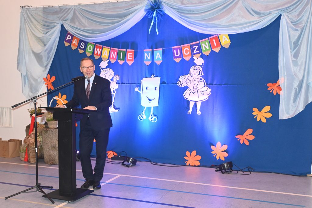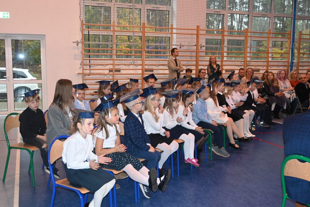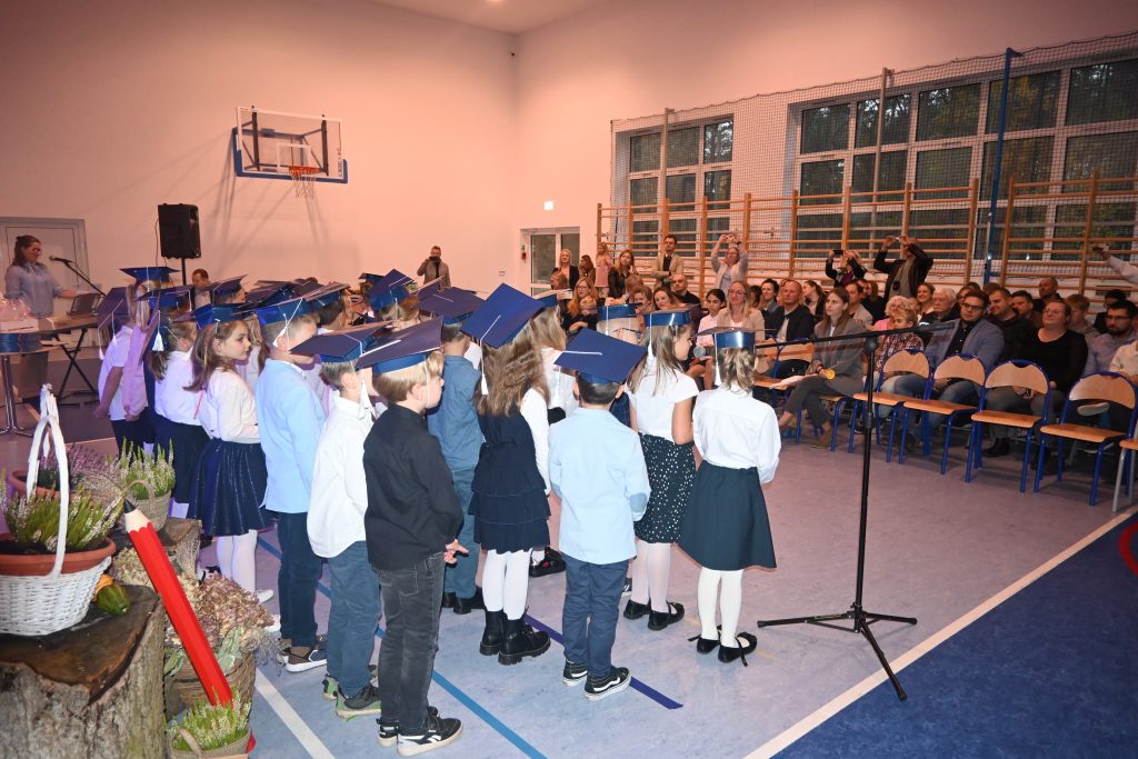 Każde dziecko rozpoczynające naukę w pierwszej klasie szkoły podstawowej czeka z wielką niecierpliwością na moment, gdy zostanie pasowane na pełnoprawnego ucznia. To bardzo ważne wydarzenie w naszej szkole miało miejsce 25 października. Tego dnia pierwszoklasiści przybyli do szkoły w galowych strojach w obecności swoich rodziców i dziadków, którzy towarzyszyli im w ceremonii ślubowania oraz pasowania na ucznia. Zaproszenie do udziału w tym wyjątkowym dniu przyjęli: Wójt Gminy Białe Błota Dariusza Fundatora, Paweł Zuehlke – wicewójt Gminy Białe Błota, Przewodniczącej Komisji Oświaty – Karolina Lachowicz , Piotr Mikołajczak sołtysa wsi Przyłęki
