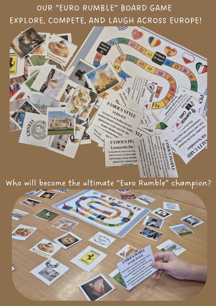 W ramach projektu eTwinning “Digital Citizens in a Smart World” uczniowie klasy 6 wzięli udział w inspirującej podróży po Europie dzięki grze planszowej „Euro Rumble”, stworzonej przez uczestników projektu.