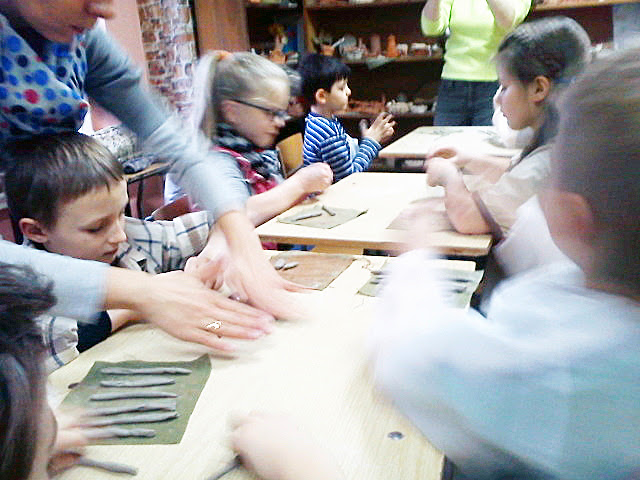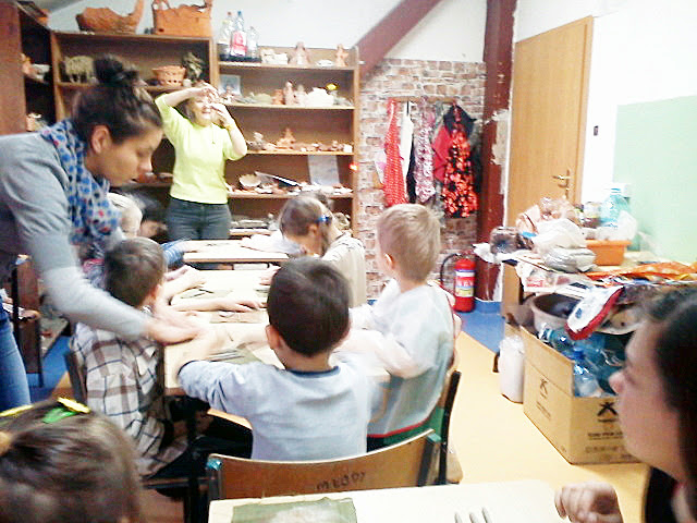 Gościliśmy również w Domu Kultury Nr 4, gdzie podczas warsztatów artystycznych prowadzonych przez Panią Danutę Nawrocką, uczniowie wykonywali naczynia z gliny, niegdyś wykorzystywane przez naszych przodków.