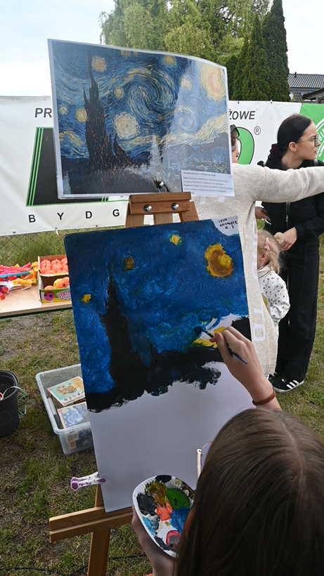 - Stoisko artystyczne, gdzie dzieci malowały słynne europejskie dzieła sztuki. Najpiękniejszy obraz został nagrodzony!