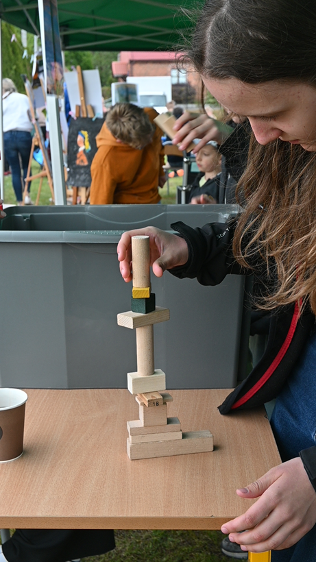 - Rywalizacja konstrukcyjna dziecko–rodzic – budowanie Wieży Eiffla z drewnianych klocków na czas!