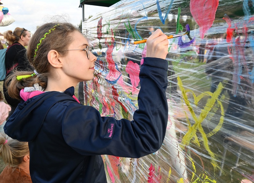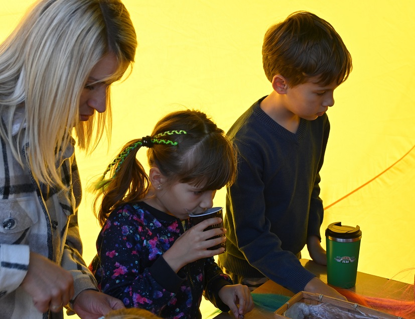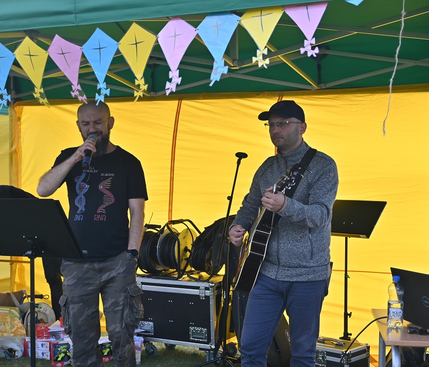 Podczas całej imprezy towarzyszyła nam muzyka na żywo, można było skorzystać z kawiarenki, zjeść ciepłą kiełbaskę z grilla, a na dzieci czekały atrakcje: malowanie buziek, kolorowe warkoczyki, malowanie na folii, tworzenie papierowych zabawek latających (samoloty, wiatraczki) oraz roboty Lego.