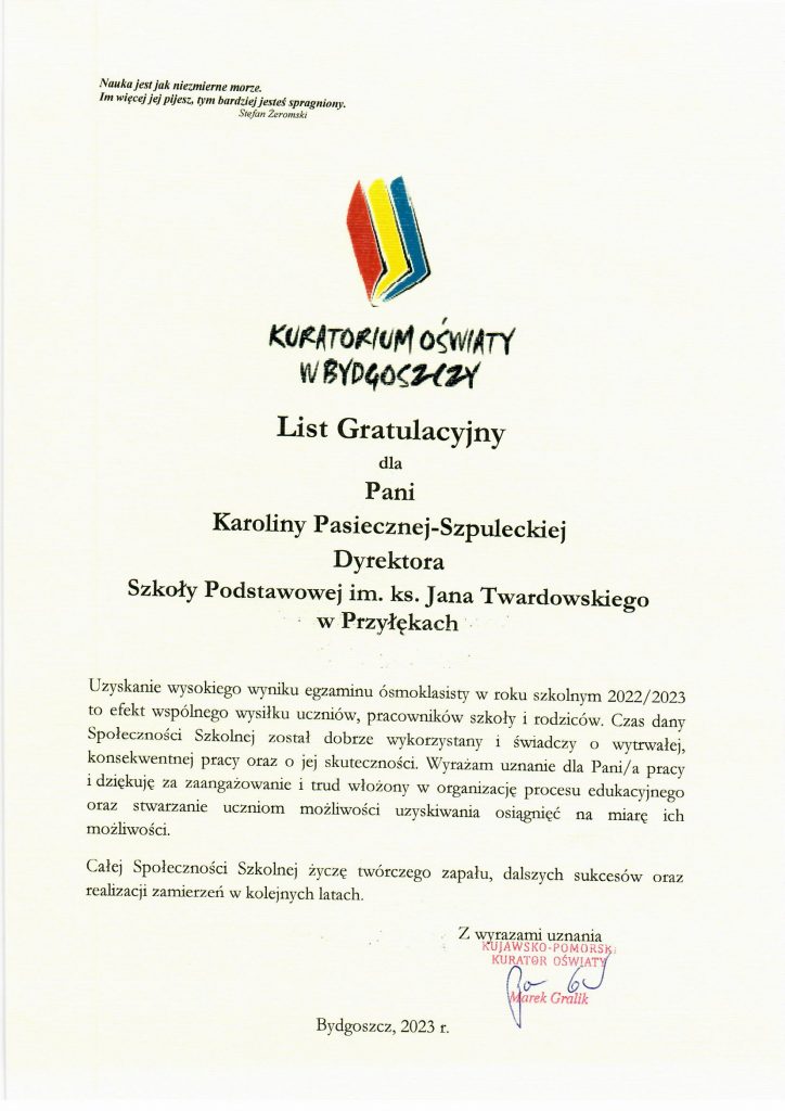 GRATULUJEMY UCZNIOM, NAUCZYCIELOM I RODZICOM