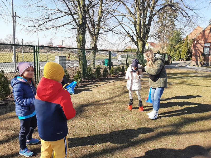 Panie ze świetlicy urozmaicały czas na powietrzu proponując udział w zabawach ruchowych: