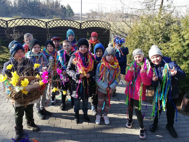 W poniedziałek 21 marca uczniowie i nauczyciele hucznie obchodzili pierwszy dzień wiosny. Oddział 0 oraz klasy 1-3 wraz z wychowawcami przygotowały piękne eko-kosze dla Pani Wiosny, a w zamian za nie każde dziecko otrzymało słodkość – wiosennego kwiatowego lizaka.