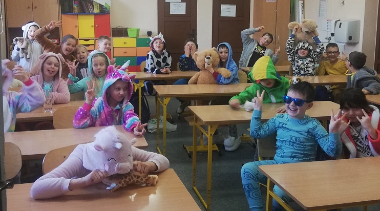 Dodatkowo klasa druga urządziła swoiste piżama party przychodząc tego dnia do szkoły w śmiesznych pidżamach i szlafrokach. Ich parada wywołała uśmiech na wszystkich twarzach.