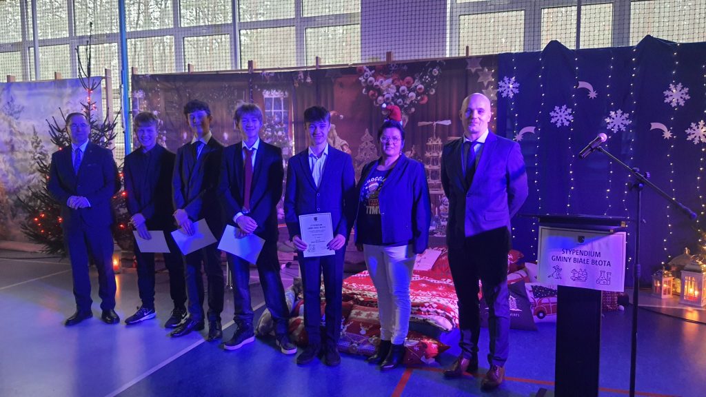 W trakcie spektaklu okazało się, że do Przyłęk przybyło więcej Mikołajów. Spotkanie uświetnili: wójt Dariusz Fundator oraz pan Patrycjusz Migawa, którzy wręczyli stypendia Laureatom i Finalistom konkursów kuratoryjnych oraz Ligi Zadaniowej.