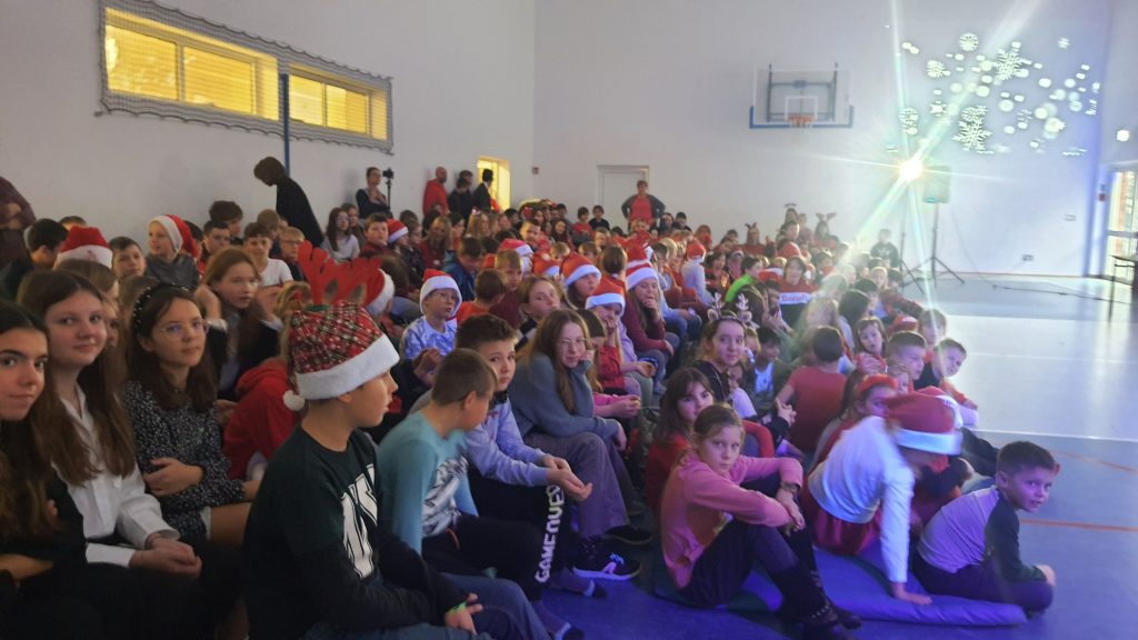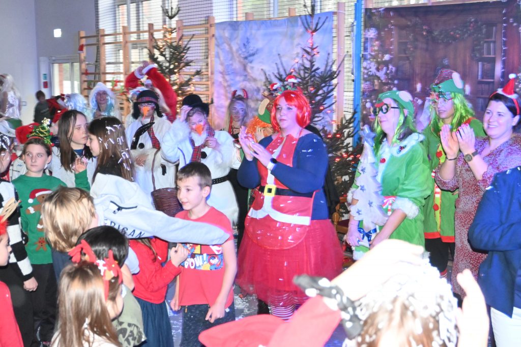 Pedagodzy przygotowali przedstawienie pt. „Mikołaj i skradziony worek”. Gołym okiem można było zobaczyć i … uchem usłyszeć, że występy belfrów bardzo się podobały. Publiczność reagowała rzęsistymi brawami i chętnie włączała we wspólne śpiewanie, zumbę i tańce. Radość nie do opisania zapanowała, kiedy w sali gimnastycznej spadł śnieg.