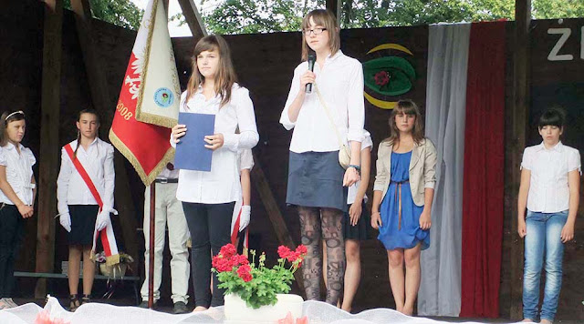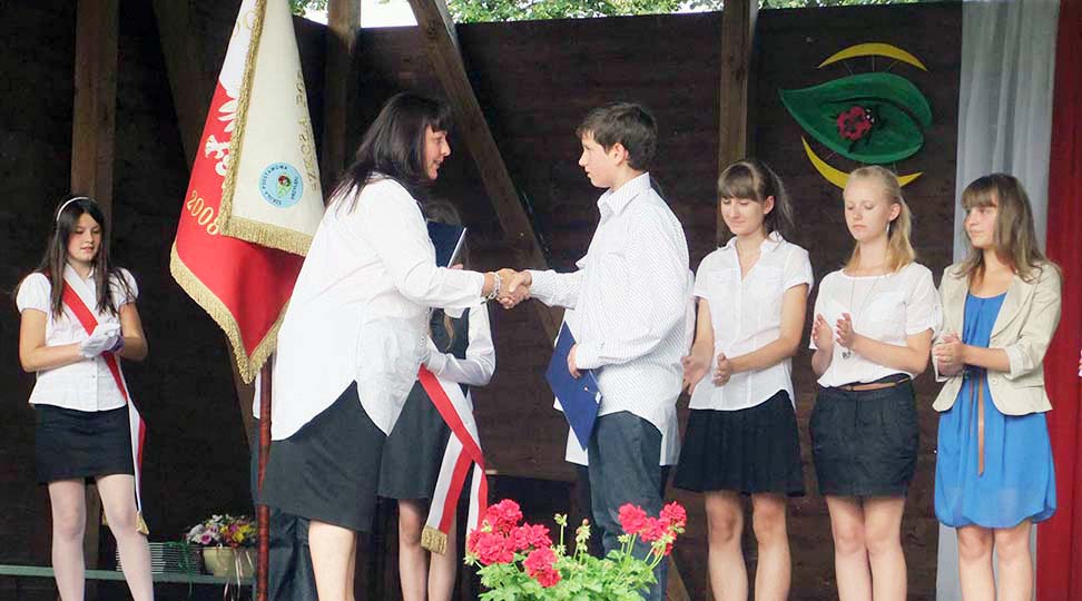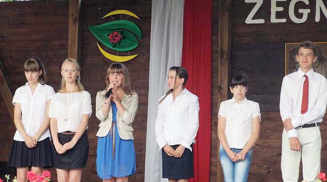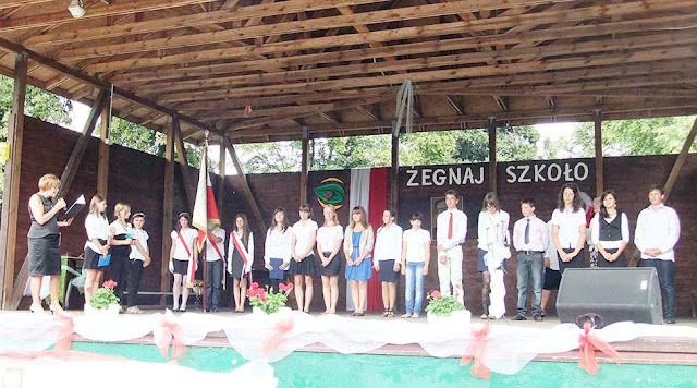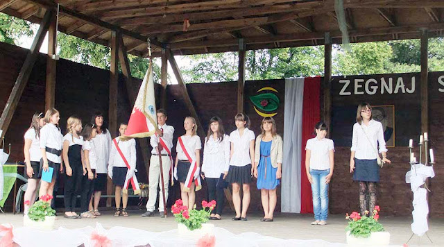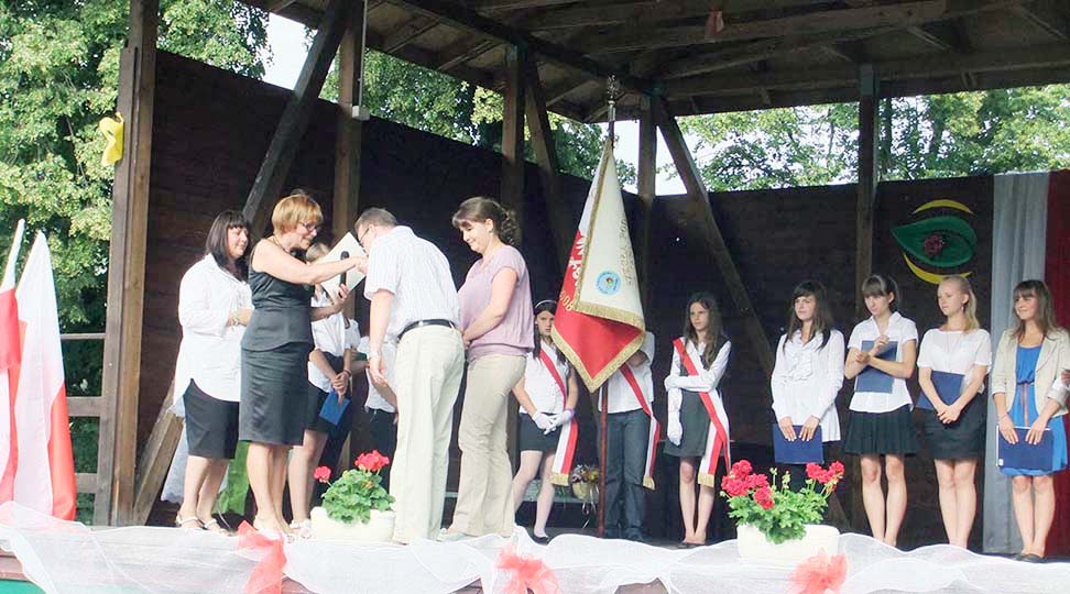 Uczniowie klas I – VI zakończyli rok szkolny w piątek. Uroczystość rozpoczęła się od mszy św. w kościele p.w. NMP odprawionej przez ks. proboszcza Zdzisława Lahuttę. Dalsza część odbyła się na boisku szkolnym.