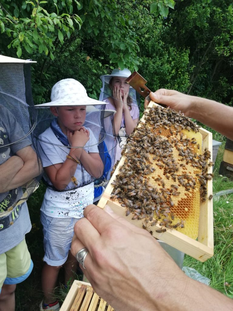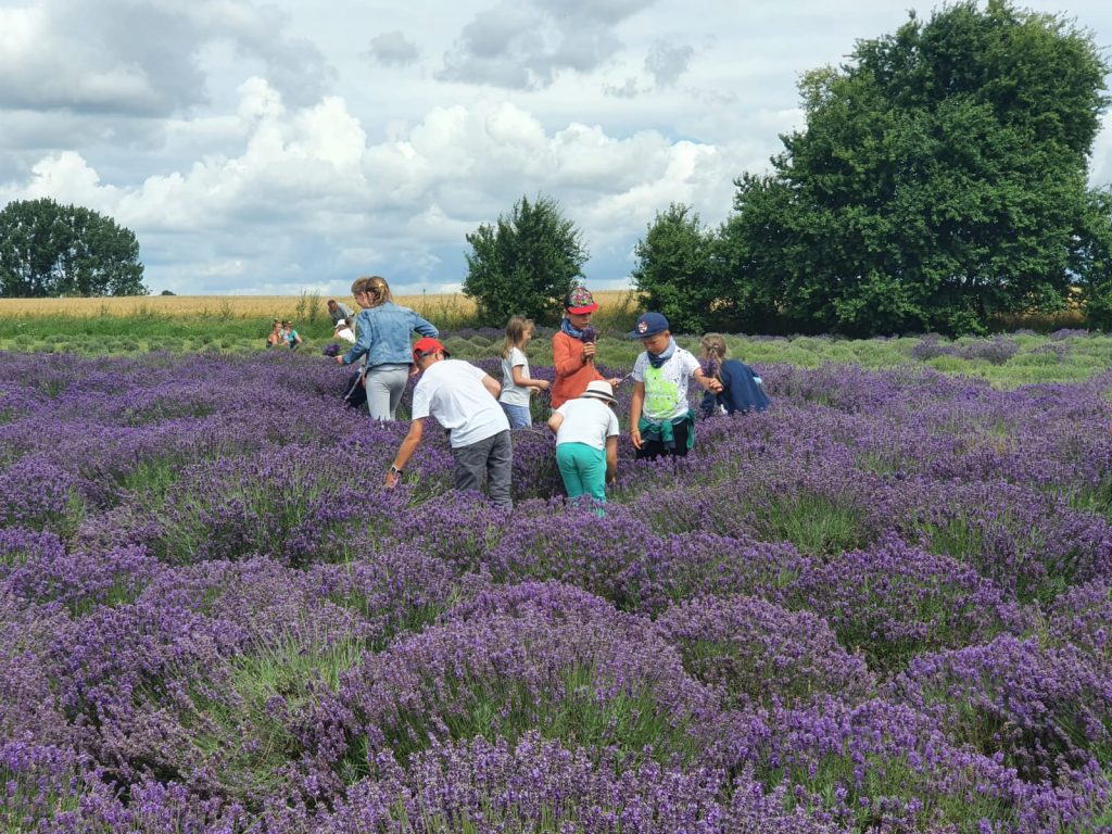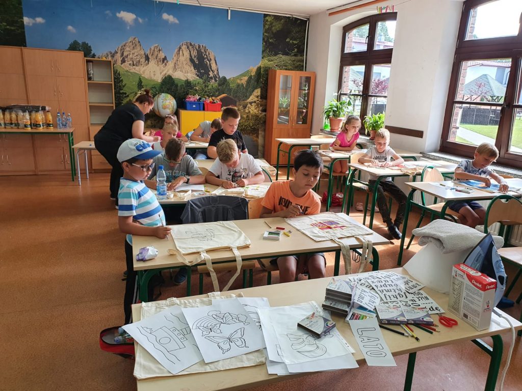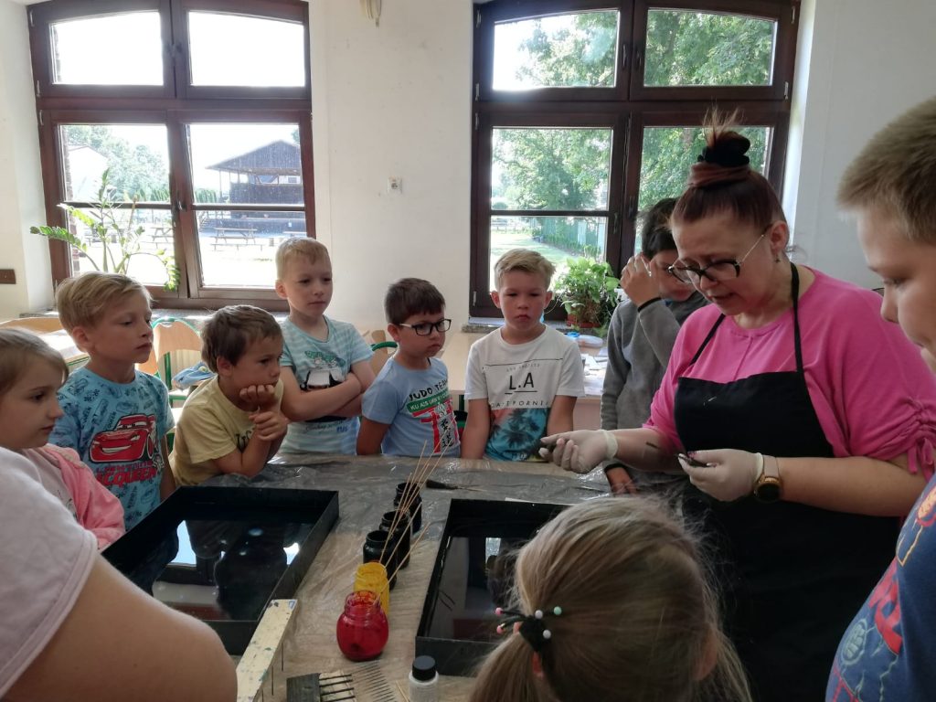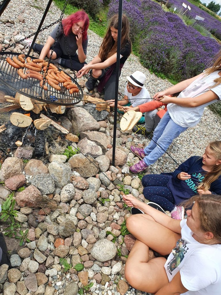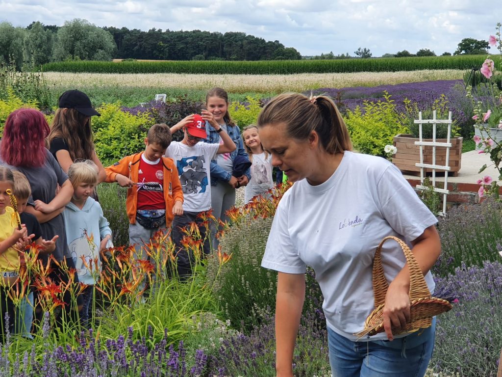 TURNUS I Niesamowite przeżycia towarzyszyły dzieciom podczas wycieczek na pola lawendy czy do ogrodu botanicznego. Podczas warsztatów pszczelarskich poznały życie pszczół z bliska. Wyjazdy uatrakcyjniły spotkanie z kozami, kurami, wspólne pieczenie kiełbasek czy tworzenie lawendowych bukietów i saszetek. Dzieci własnoręcznie wykonały zdobienie toreb suchymi pastelami, jak także malowały na wodzie. Na koniec półkolonii każdy uczestnik otrzymał medal za udział w licznych zawodach sportowych i mały upominek.