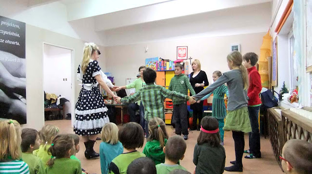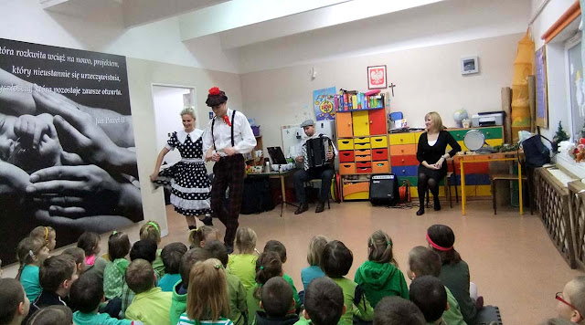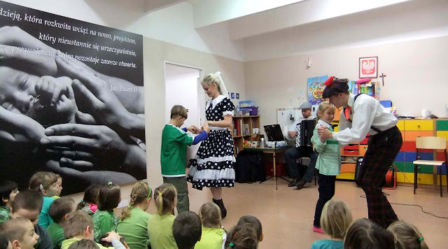 Uczniowie zapoznali się ze sposobem tańczenia, obowiązującymi strojami. Wysłuchali wielu miejskich szlagierów i melodii tanecznych. Niektórzy zatańczyli z artystami walczyka, polkę, krakowiaka. W nagrodę mogli towarzyszyć w propozycji muzycznej akordeoniście – panu Krzysiowi.
