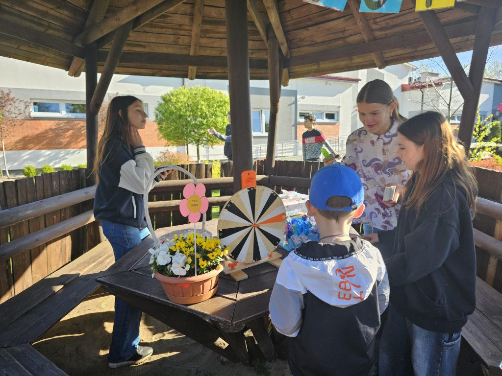 Cała społeczność naszej szkoły spotkała się w radosnej atmosferze by świętować to wydarzenie. Dla wszystkich przybyłych, wolontariusze przygotowali moc atrakcji: kawiarenkę, w której królowały wypieki naszych uczniów, koło fortuny z zagadkami dla najmłodszych, loteria fantowa.