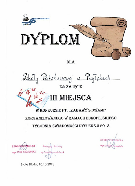 W ramach Europejskiego Tygodnia Świadomości Dysleksji, dnia 10 października 2013 roku odbyło się w Szkole Podstawowej w Białych Błotach, III Międzyszkolne Dyktando dla Uczniów z Dysleksją o Pióro Wójta Gminy Białe Błota.