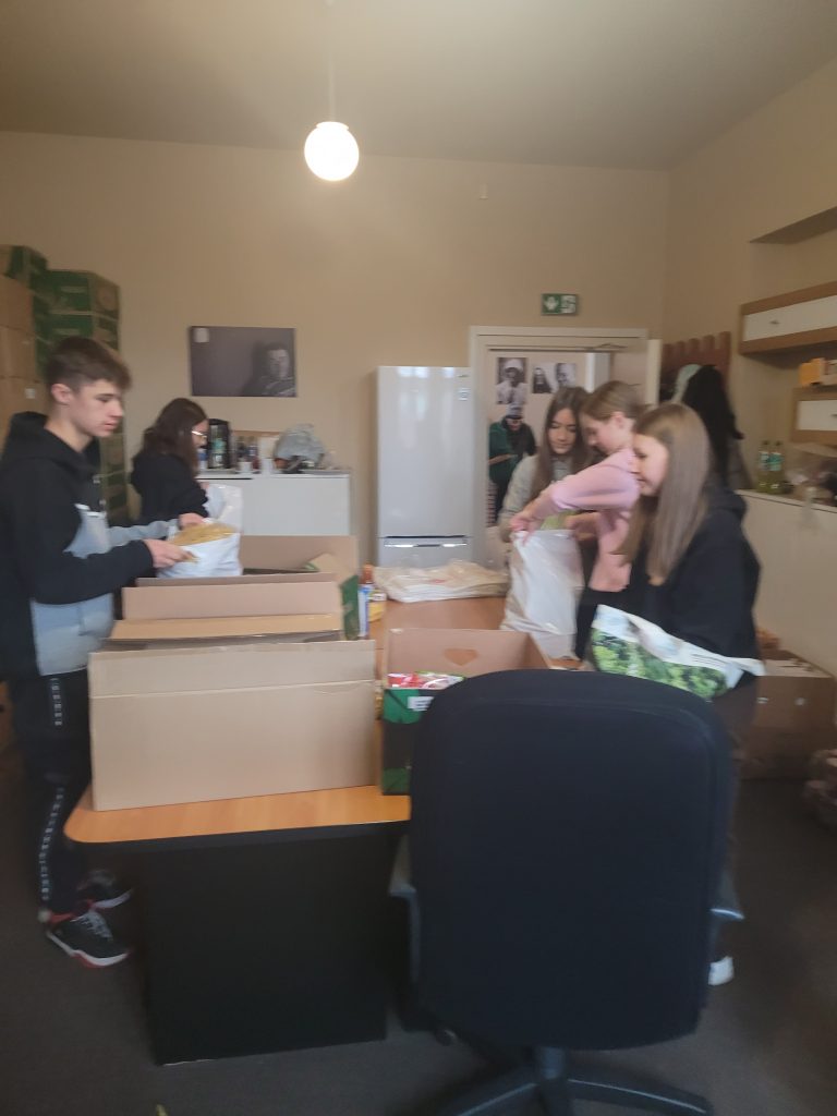 - Pakowaliśmy paczki dla potrzebujących w siedzibie Caritas.